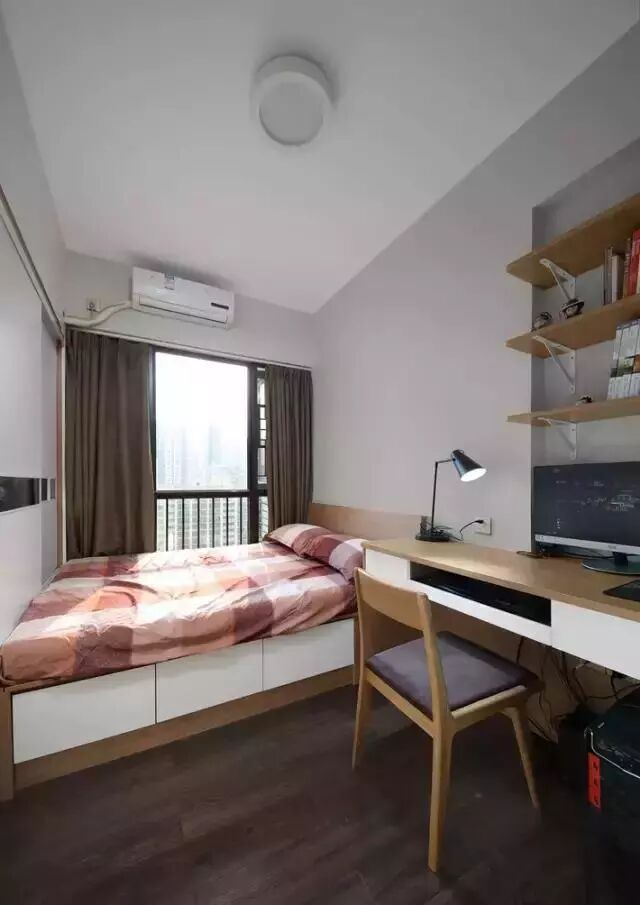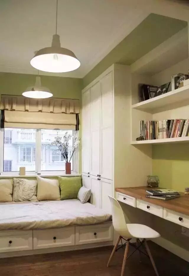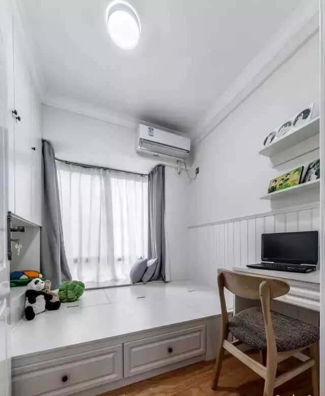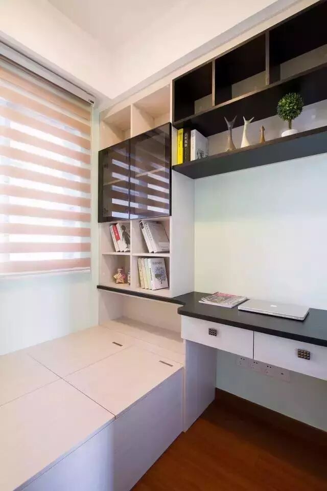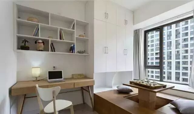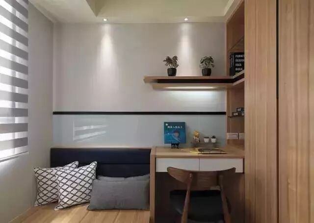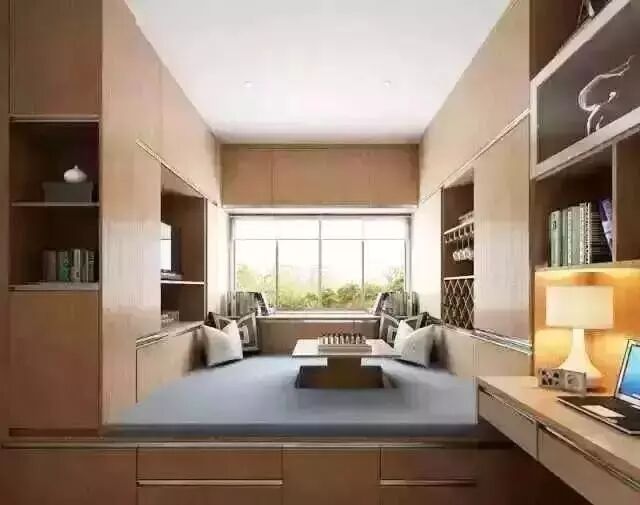 将房间设计成榻榻米书房再合适不过啦,平时做书房用,有客人来,也可以当客房,同时还有强大的收纳功能,一房多用,实用又美观!