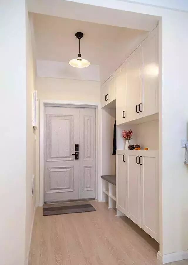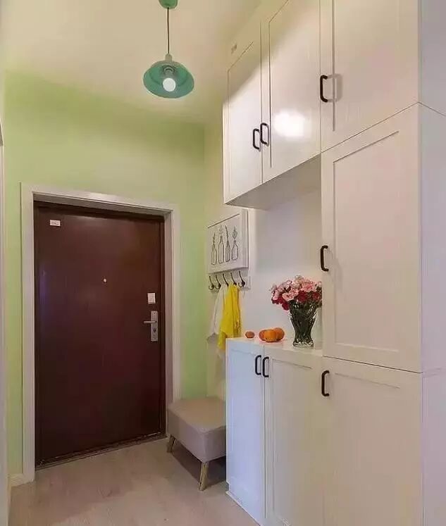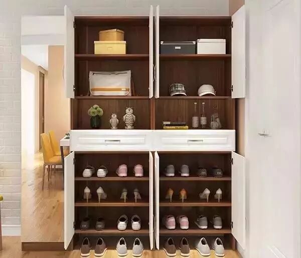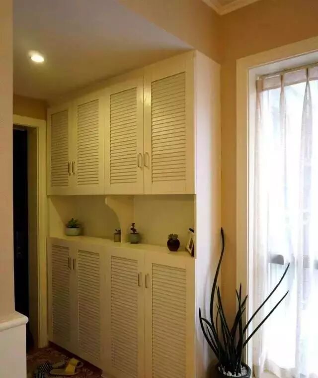 鞋柜的下层门建议用百叶门,因为这样透气通风,如果做成封闭式的,长期下来,鞋子的异味就是充满整个柜子。