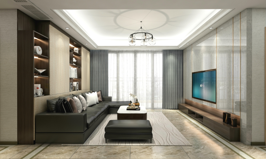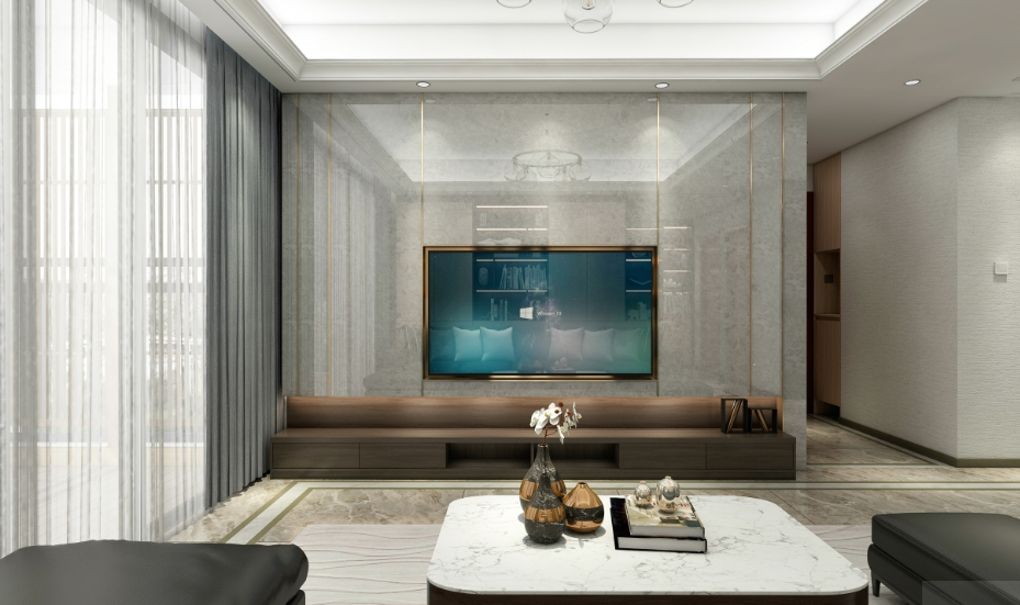 电视背景墙跟护墙板的结合,营造整个空间的整体性。