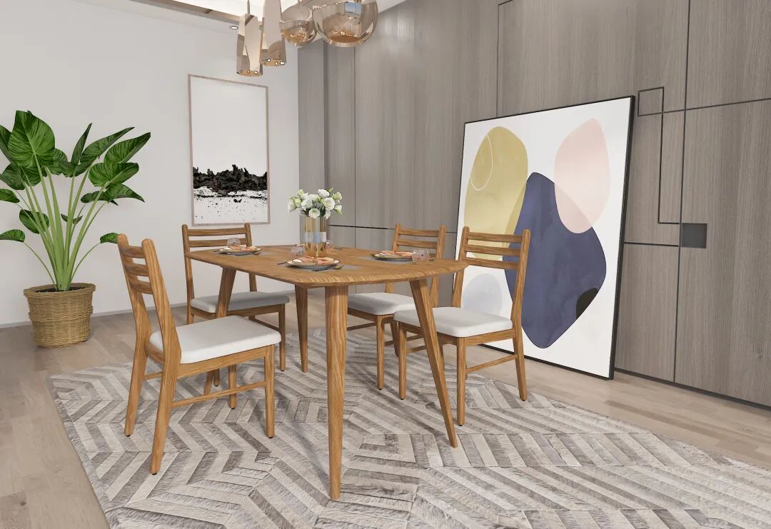 现代简约风一般基色以白色和灰白色为主,通过搭配一些色彩对比比较明显的窗帘、凳子等小物件进行组合,整体空间给人规整、简单、开阔的感觉。