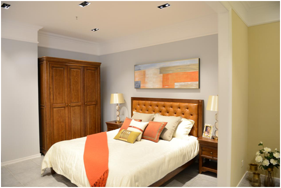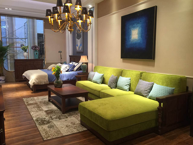美式风浅色系和深色系都可以,浅色系适合采光比较差的空间,深色系适合光线较好的空间。