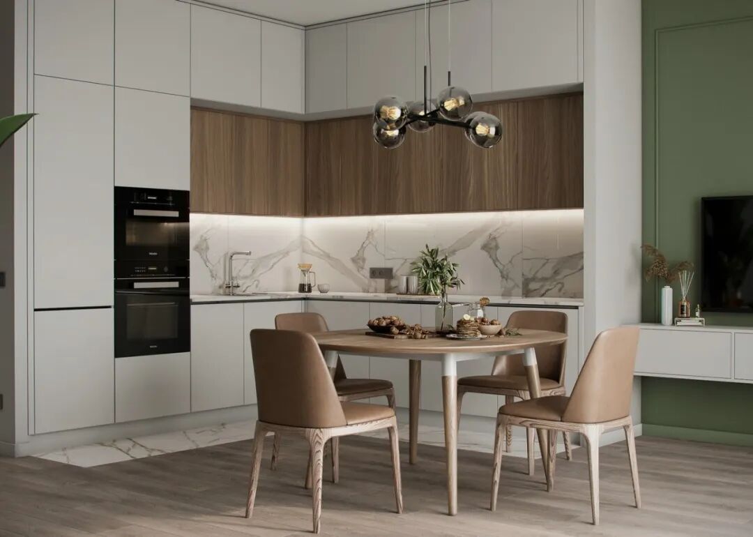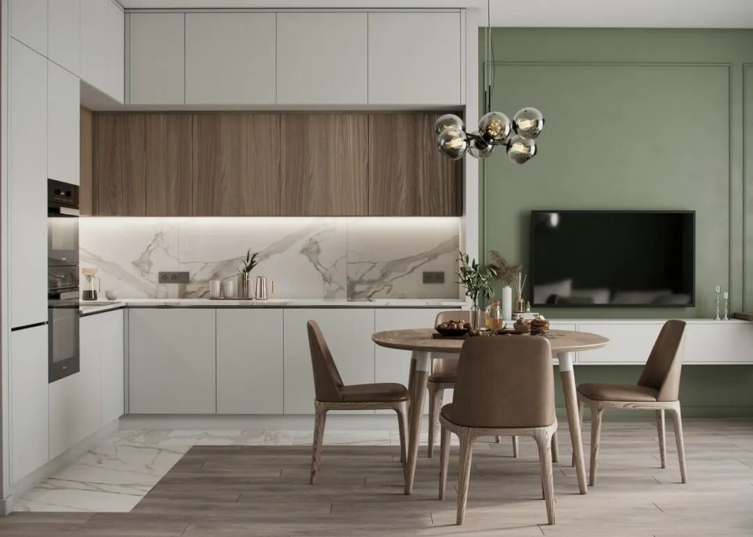 设计师在色彩上进行了巧妙的搭配,以灰、白与木色营造出洁净利落的视觉效果,那撩动心尖的一抹绿,素雅,恬静,有情调。