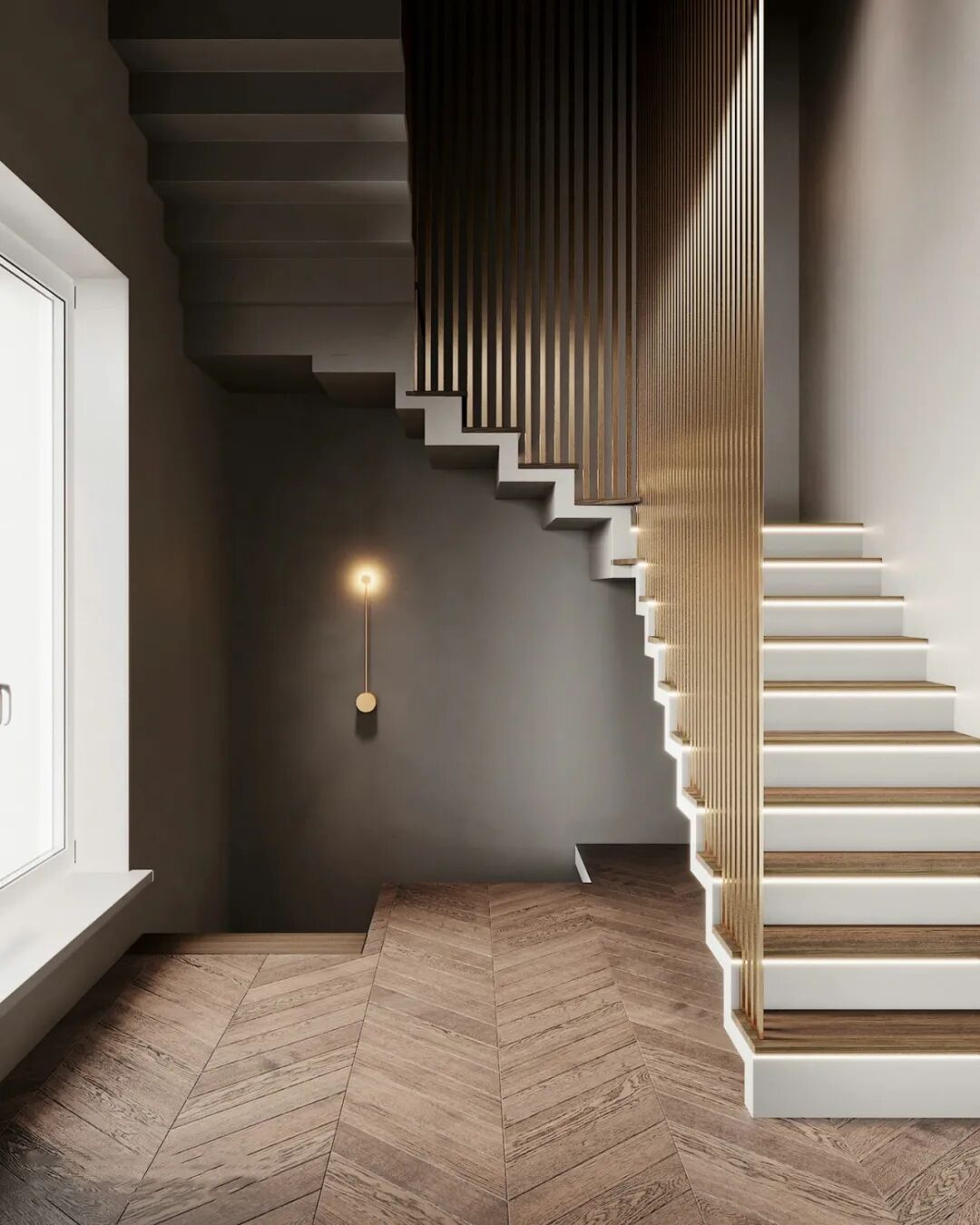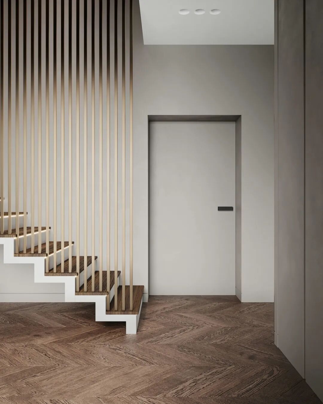 楼梯作为居室一个过渡区,需要兼备实用与美观的双重功能。干净、利落的线条,纯净的色调,高级感便呼之欲出,使空间更显整洁、干净。