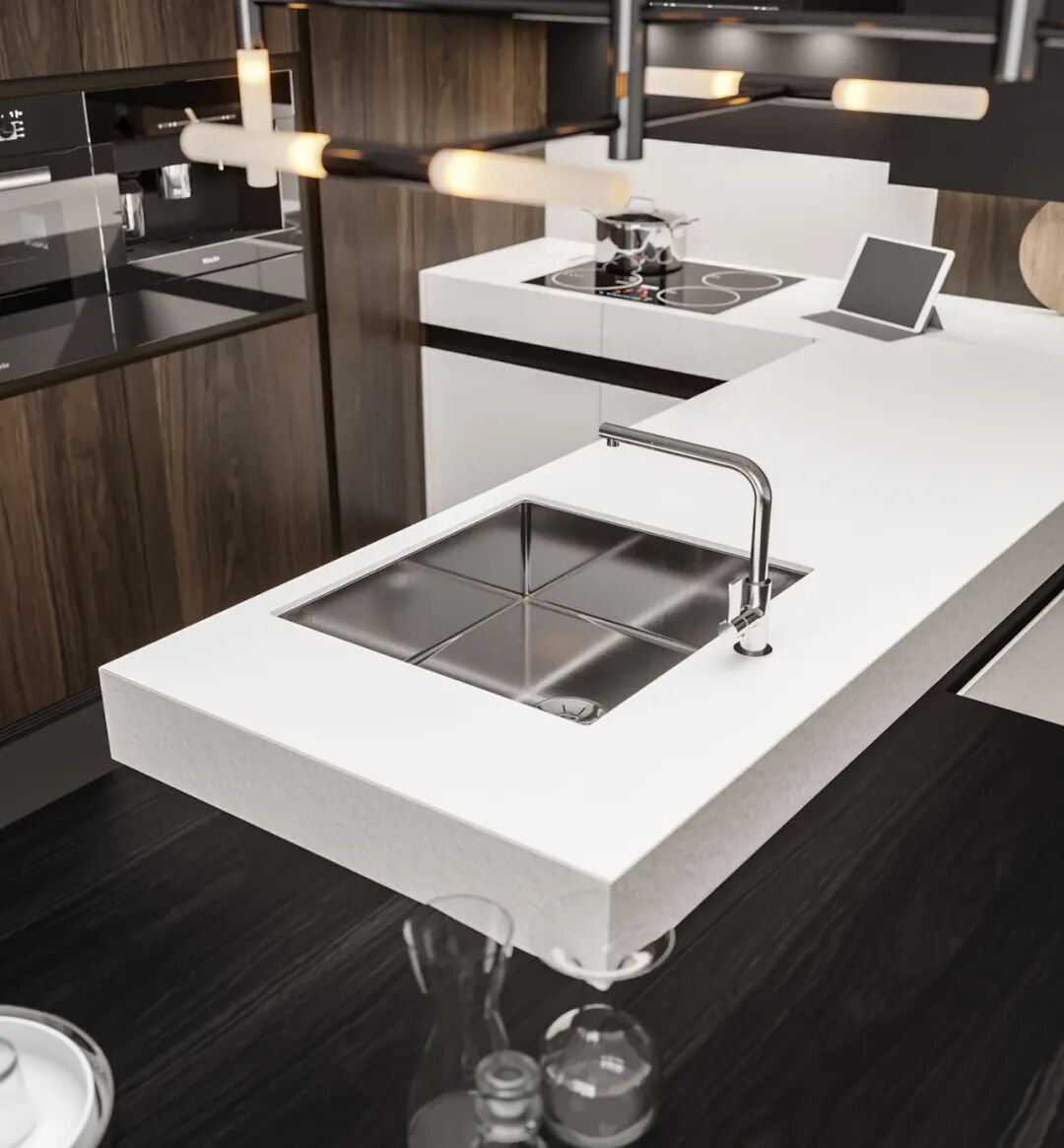 在开放式的厨房中,
