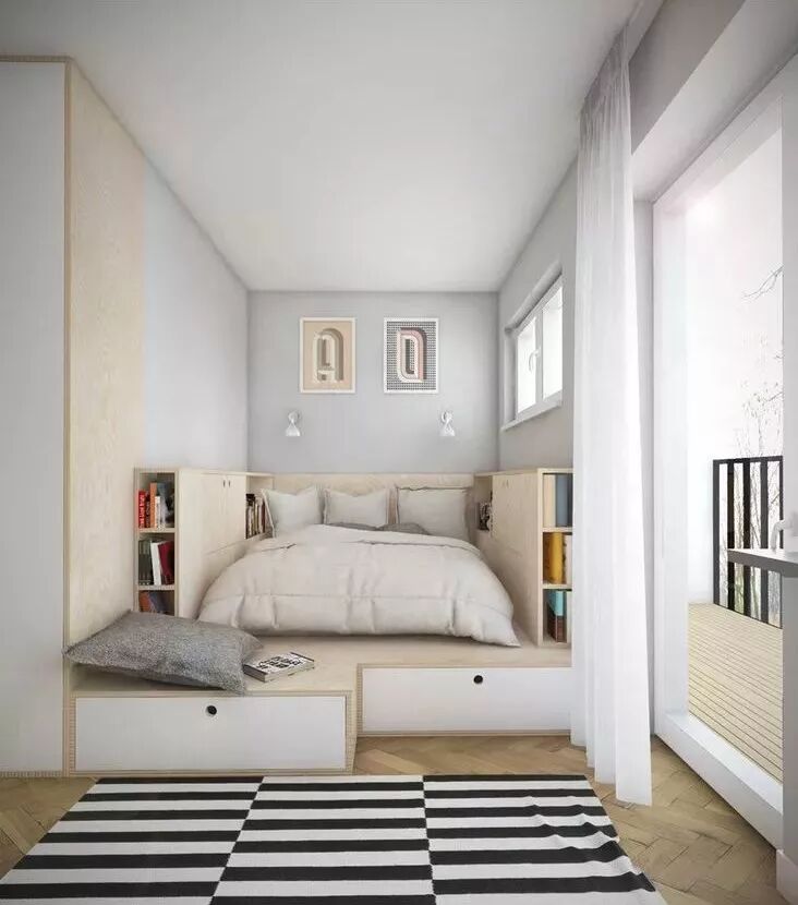 卧室地台一侧是抽拉式柜体,可以收纳孩子们的玩具等零碎的物品。既亲近自然,又功能满满!