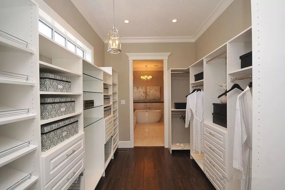 如果家里有一个单独的空房间或空间(比如:储物室),那么完全可以利用起来做一个单独的步入式衣帽间。换季衣物存放、试衣、化妆都可以在这里进行。