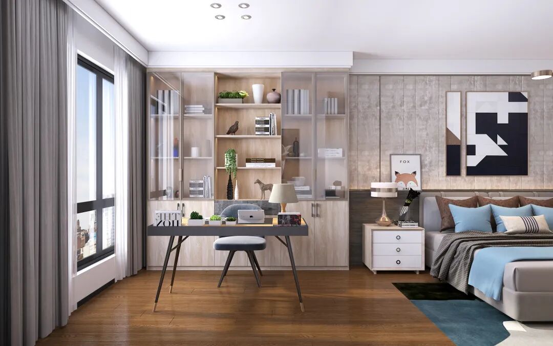 富有生态感的板材花色设计在卧室空间中格外舒适,享受大自然般的干净舒爽。其实浪漫卧室不一定是法式风格,生态化带上独立书房,色彩柔和温馨。不管是置顶衣柜,还是书柜的设计,都在引导我们放松精神。02