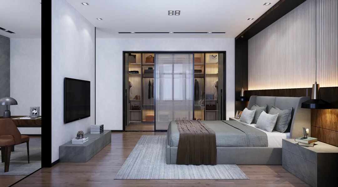 有时候这些最干净的房子,才是最有居住感的生活家。都市快节奏的生活,劳累一天回到家中,就想将自己扔进松软舒适的大床中;睡醒还想有大大的衣帽间让自己好好地为自己打扮一番。这款极简舒服的卧室设计就能够给你带来这样舒适的享受了吧!