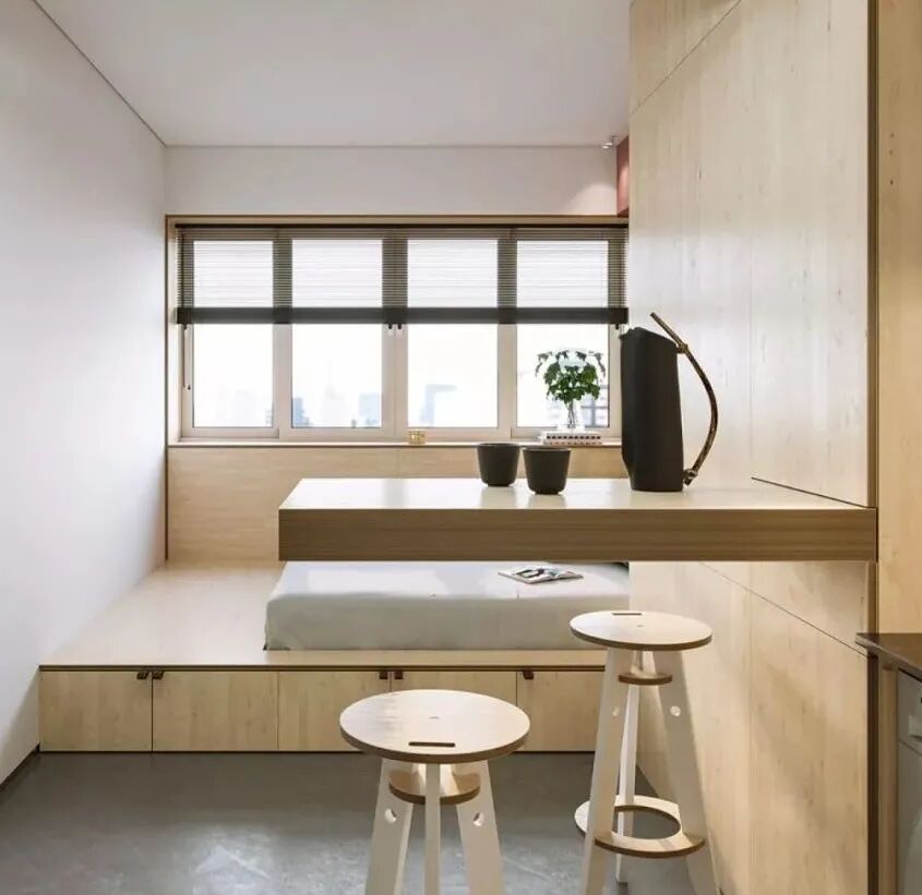 能更好的利用房间上下的高度空间,划分功能区域,其内既能利用靠墙的区域设计衣柜、书架等收纳箱体,又能利用地台的横向空间,设计出茶台、床榻等休憩空间,让一间房有了更多的可能性,更让房间实现了一体化,视觉上更整洁美观。