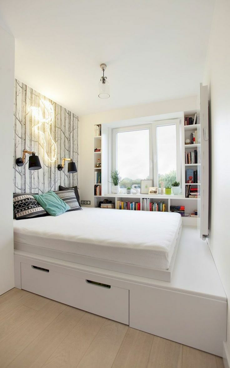 利用柜体箱体的容量收纳功能以及极好的承重性,设计一个兼具贮存与承载功能的地台,同时围绕地台为核心,进行整体空间设计的一体化房间装修设计。