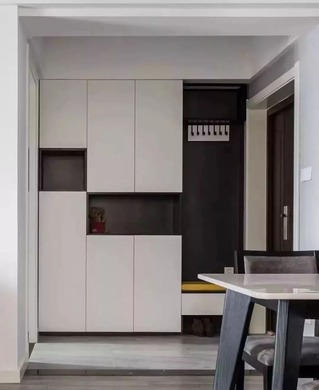 看完以上这些鞋柜和换鞋凳结合的设计,你是否也打算把自家的玄关走廊这样去布局呢?建议各位屋主可以尝试一下哦~毕竟鞋柜做那么大,也不一定有那么多的鞋子要放,留出一部分来做个换鞋凳,方便换鞋子还可以挂衣服,岂不是更合适吗?