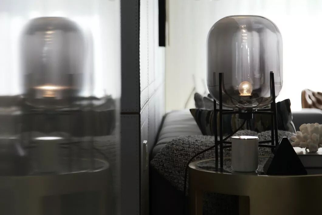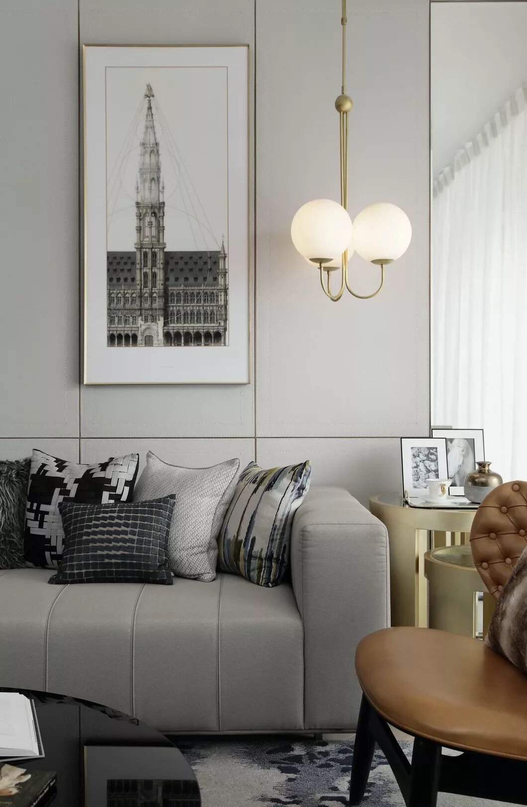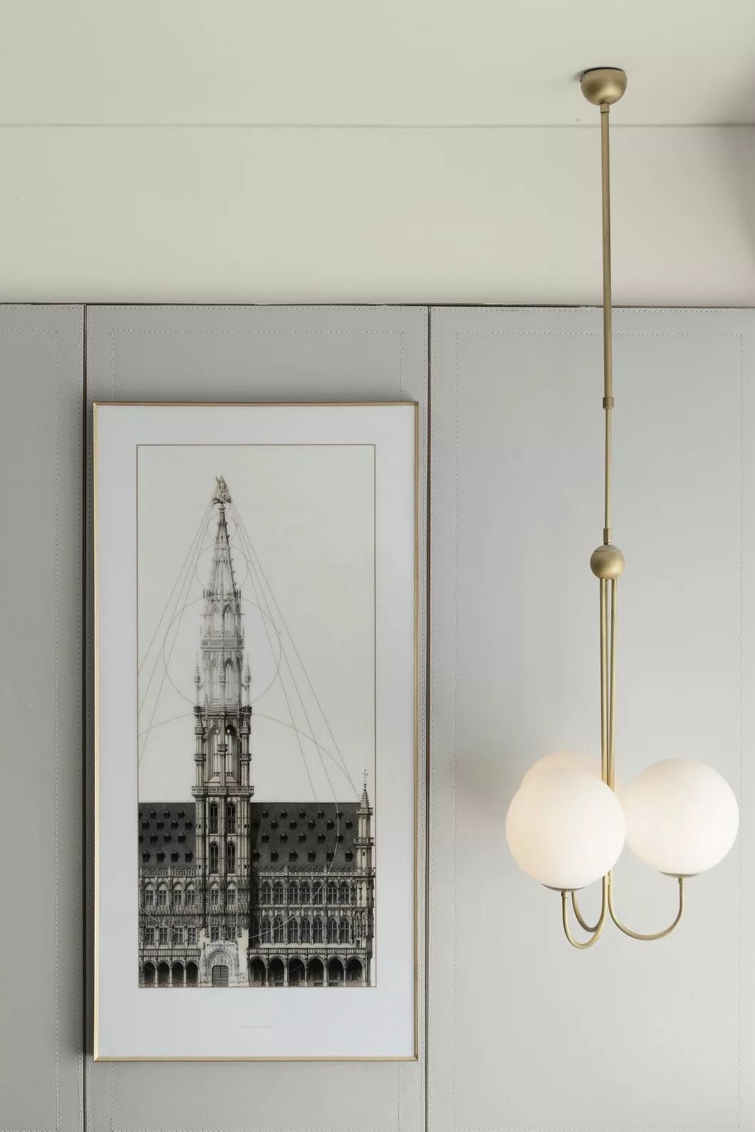 水银色复古灯具里的暖色豆光,扎实中透着灵动,给银灰色的空间染出一抹热情,仿是黑夜中透出的灯火,在夜的隐秘中守候着家人。