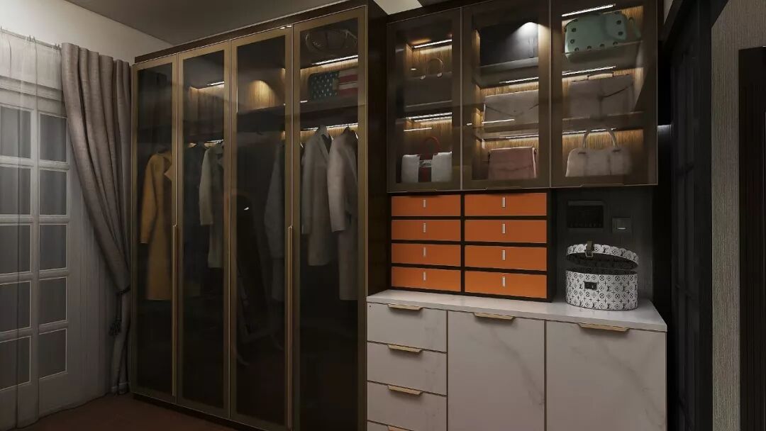 意风榴莲全屋定制为您打造与墙面一体的超大衣柜,平时换洗衣物有了安身之处不说,还能提升卧室颜值,一举多得,值得选购!