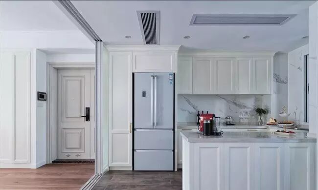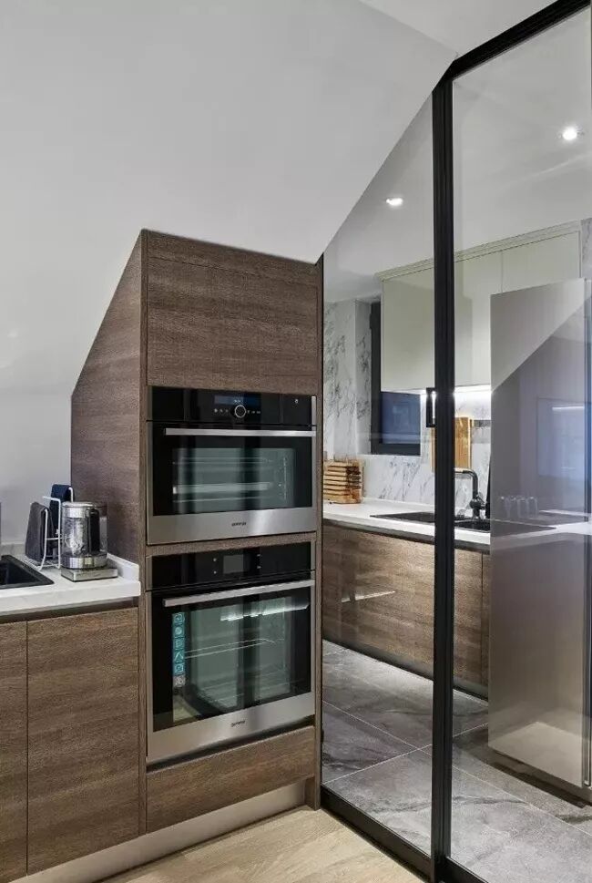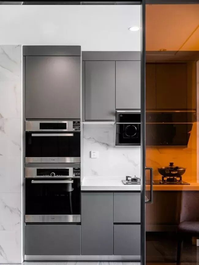 冰箱、烤箱、微波炉、洗碗机......厨房电器越来越多,而且在一些小户型的设计当中,选择将洗衣机放入厨房。所以应该尽可能地将电器容纳进橱柜里,让台面显得更加清爽。尤其在L型厨房中,当电器嵌入到适当的位置,则可以在使用的时候互不干扰,进而大大提升效率。