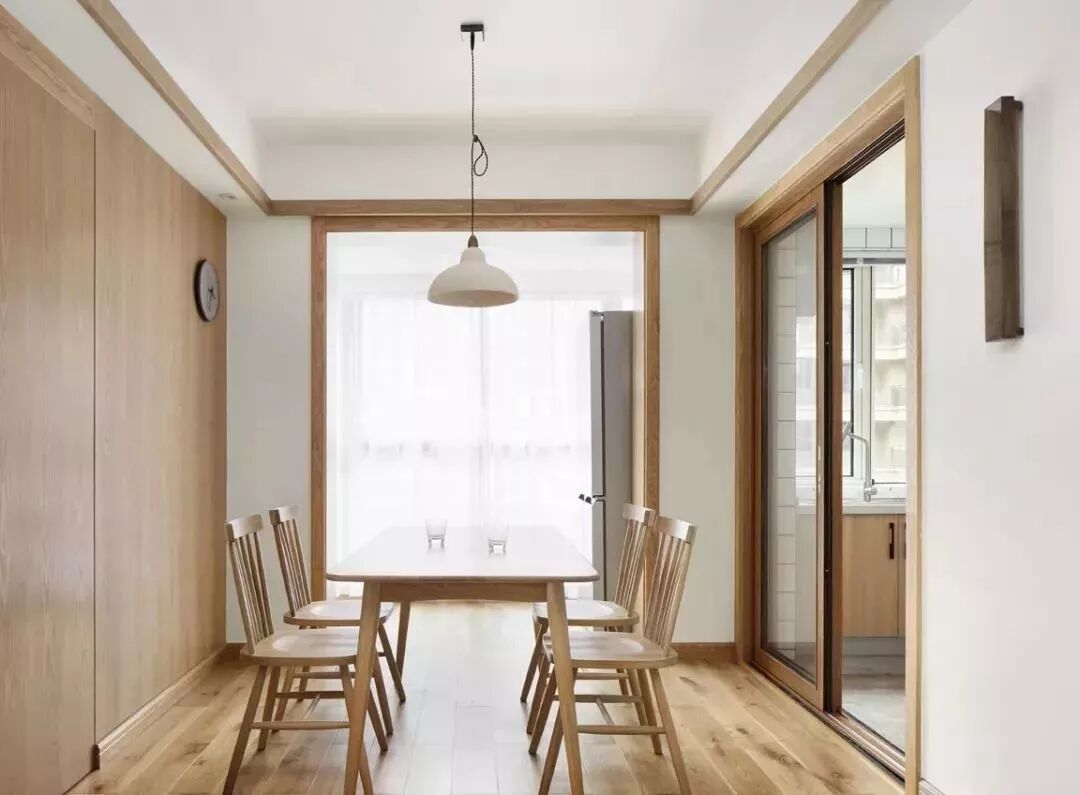 在和餐桌相连的墙壁上开个窗,装上玻璃或者上悬窗,使厨房和其他空间有了沟通。