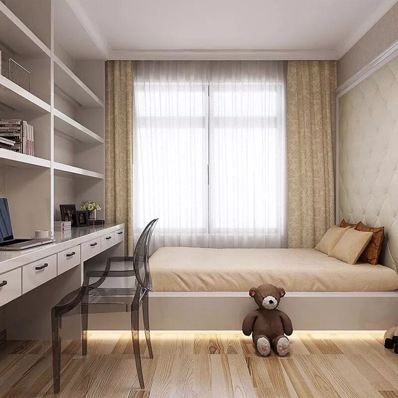 孩子逐渐长大,活动范围也逐步增大,房间应该预留足够的活动空间,可通过定制组合家具,让孩子自由玩耍的空间更大些。