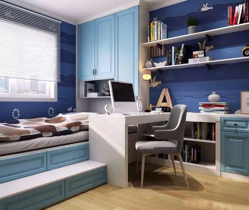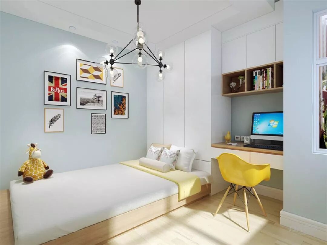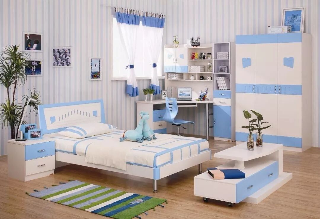 因为孩子活泼好动,易碰撞受伤,所以儿童房首选边角为圆角的家具;