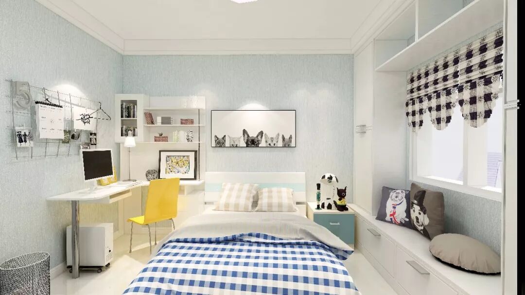 考虑到儿童活泼好动的天性,要确保孩子房间要预留一块活动空间,方便孩子在自己房间接待同学朋友的来访和娱乐。