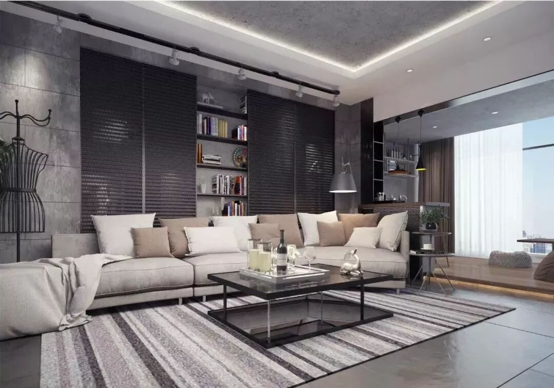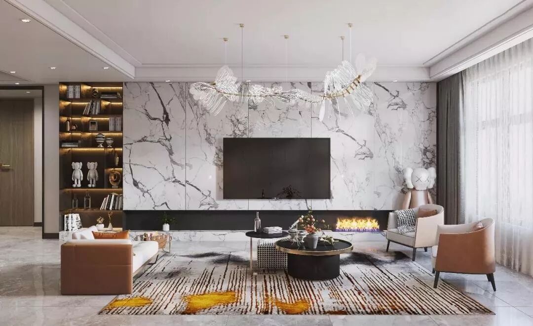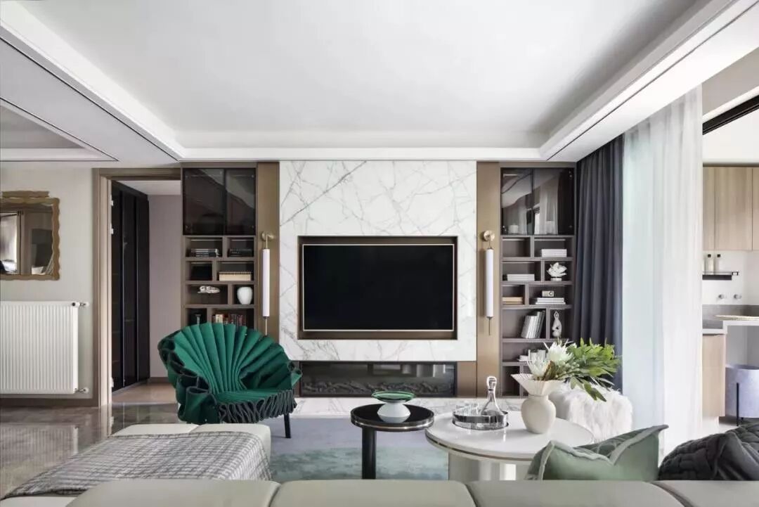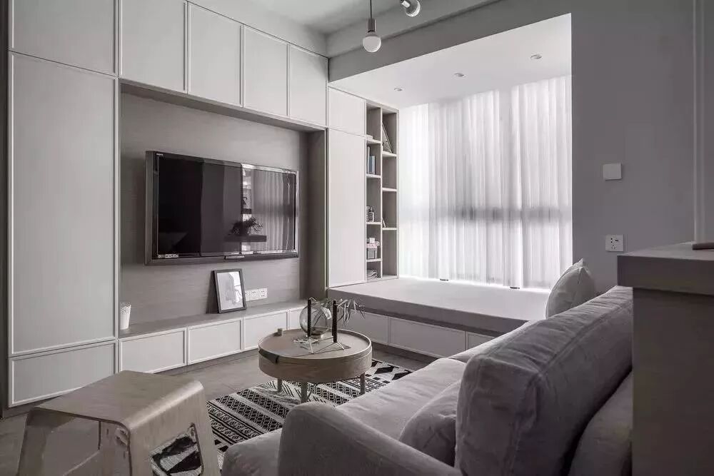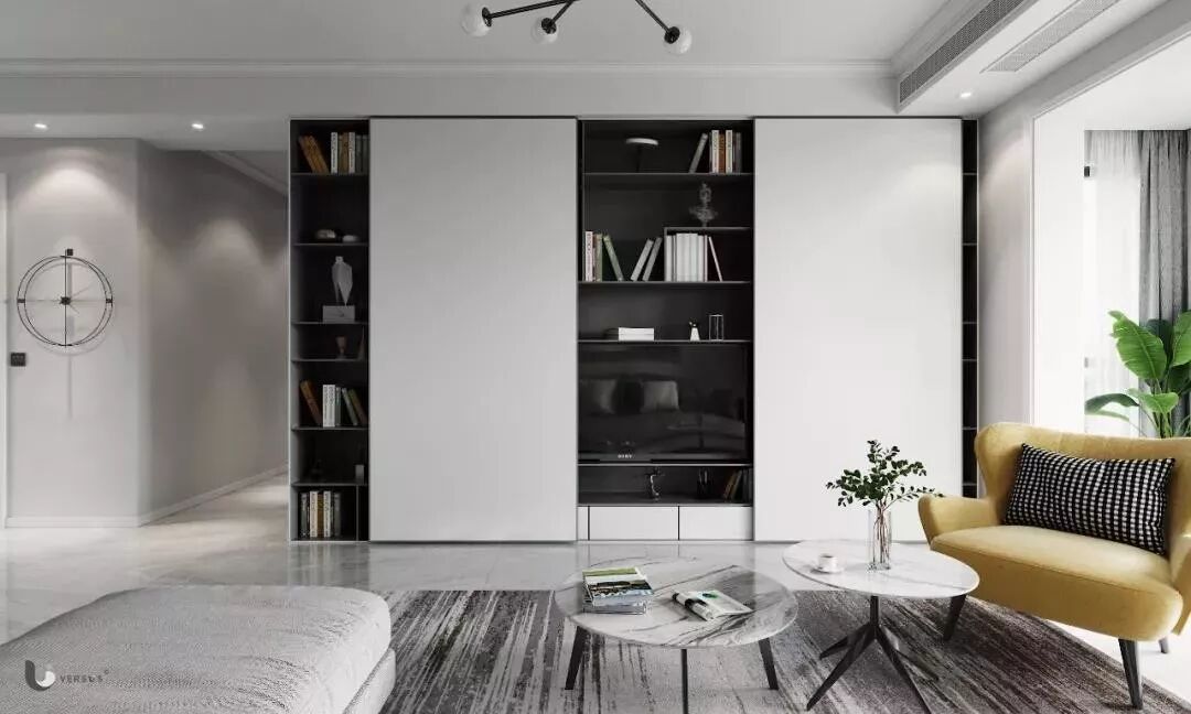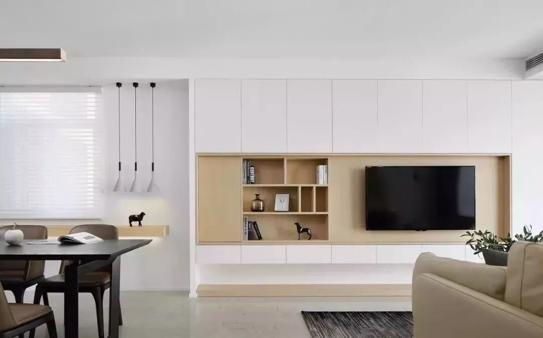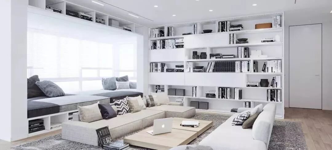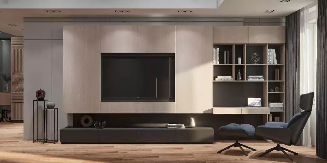 将不同尺度的层板融入电视柜中设计,用来放书,