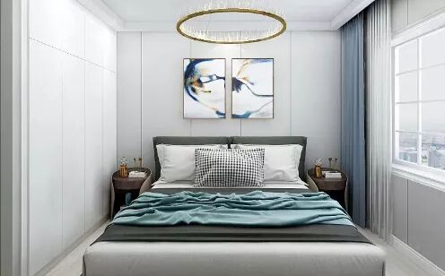 ▲ 细节,是整体的视觉骨架,像安静的绅士,有了金属的搭配,像轻奢的铠甲,原创而独特。吊曳的铜质的吊灯,让生活的意境和情境都从这里延展。定制通顶的推拉大衣柜,享受“衣来伸手”的便捷。