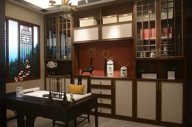 温润自然的木饰面,虽然有一股与生俱来的朴素气质,但是恰到好处地运用于书房空间,也会在简单中营造奢华感受。