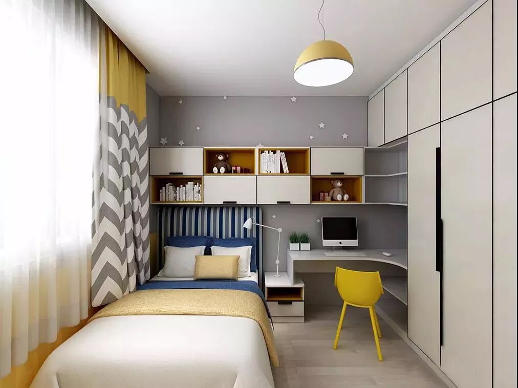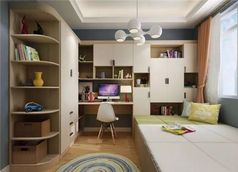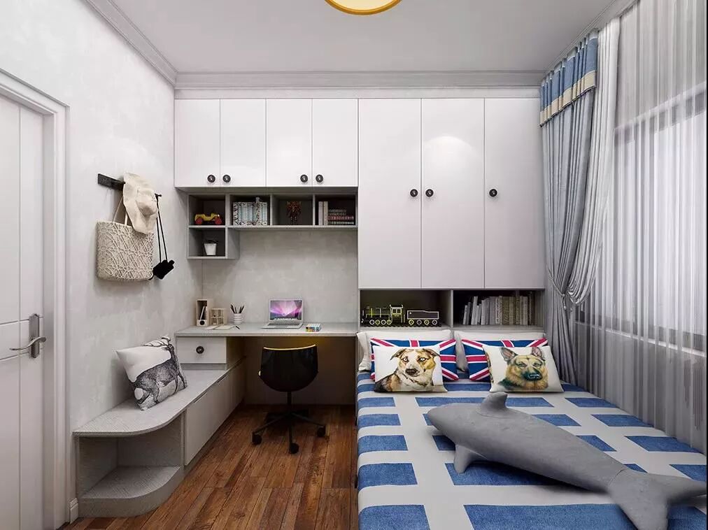 一般户型设计里,儿童房都是偏小的,但孩子成长快,书本、玩具、衣服等换的也快,如果没有足够的收纳空间,小儿童房很快就不够用了。