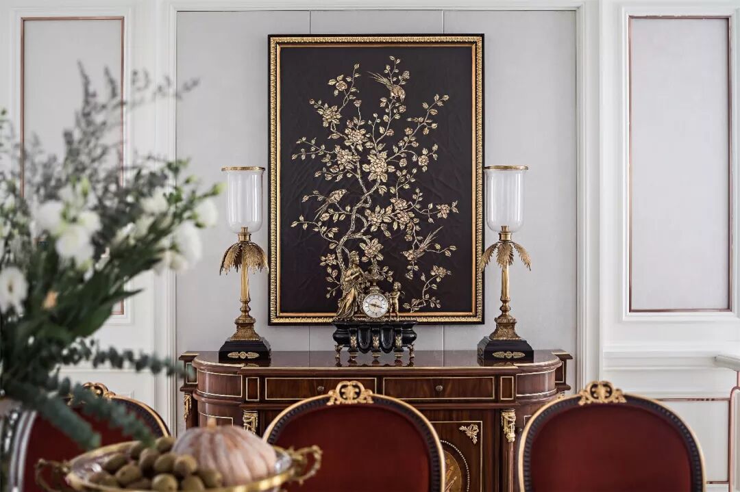 宅中家具皆来自奢华家具品牌金凤凰的定制设计,造型雅致华贵之余也兼顾了高品质的舒适感。