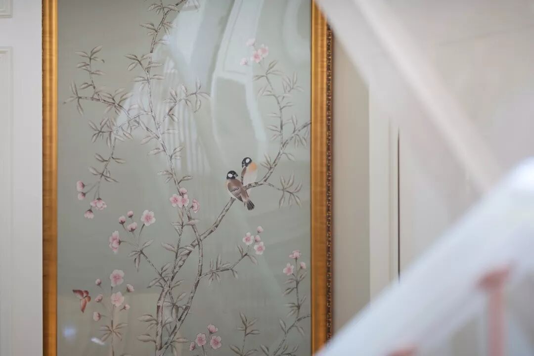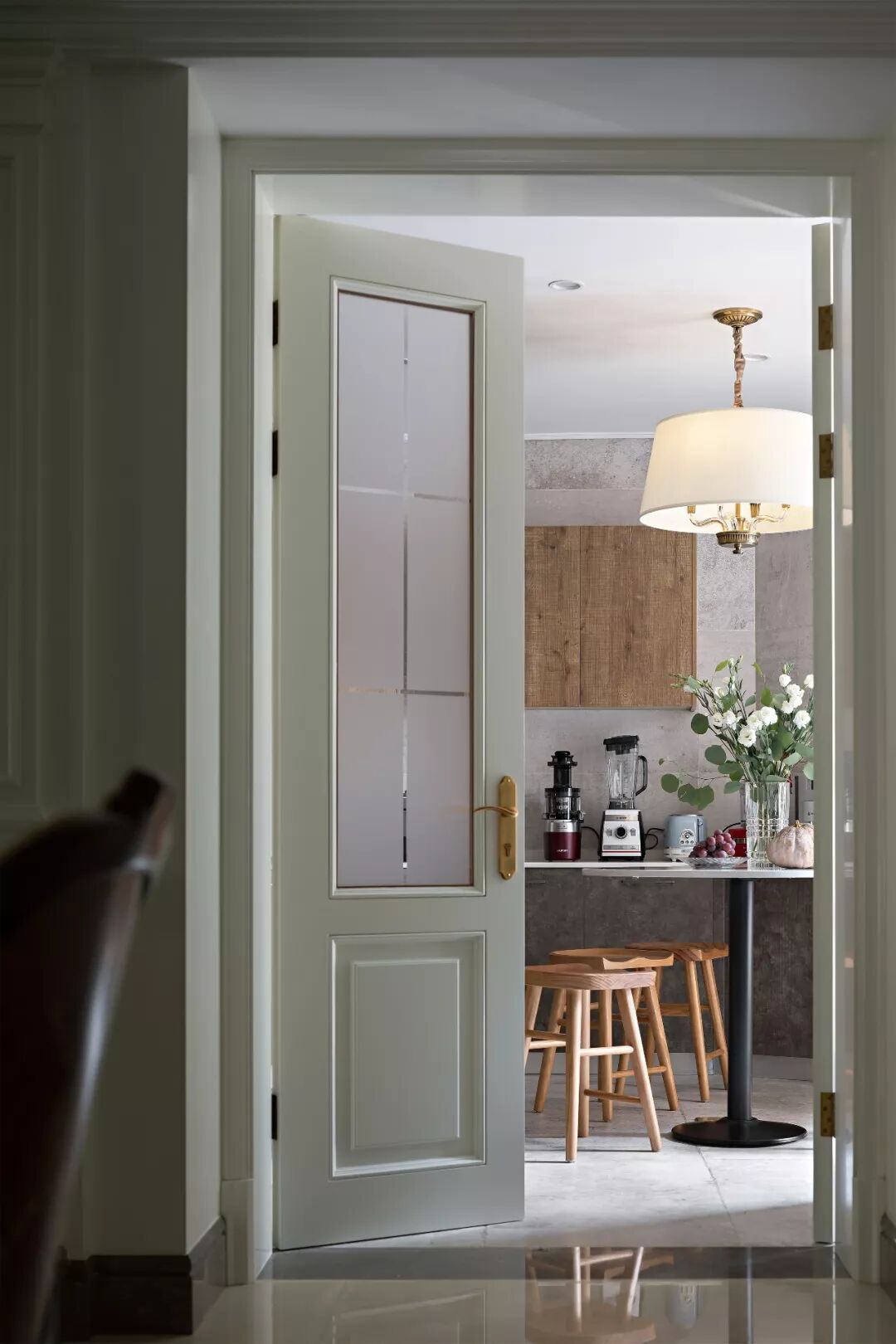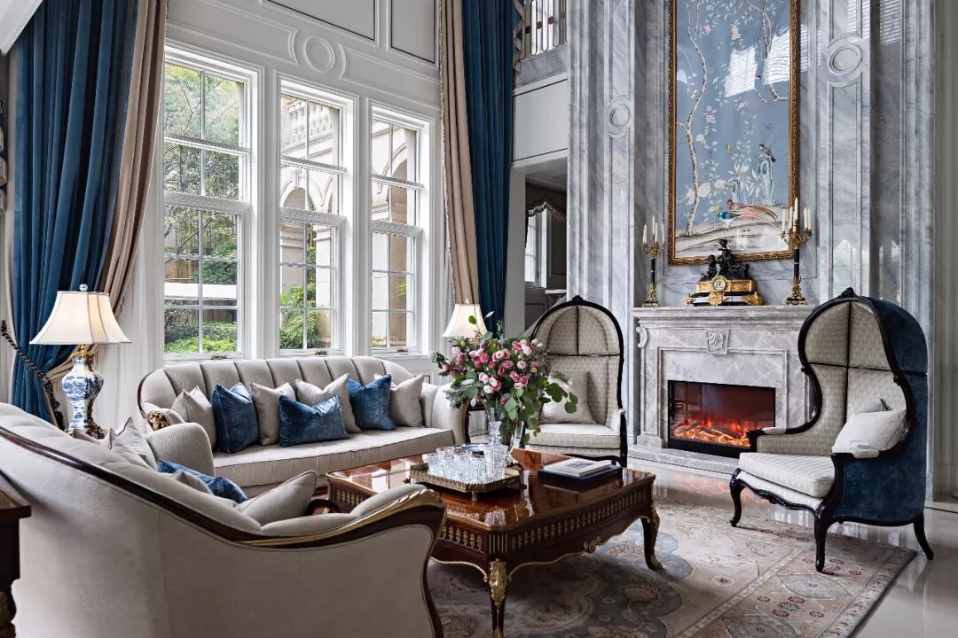 客厅正面是一个带着精致雕花的壁炉,等到冬天点燃炉火,居住氛围温暖而浪漫,有着浓浓人情味,最适宜团聚。