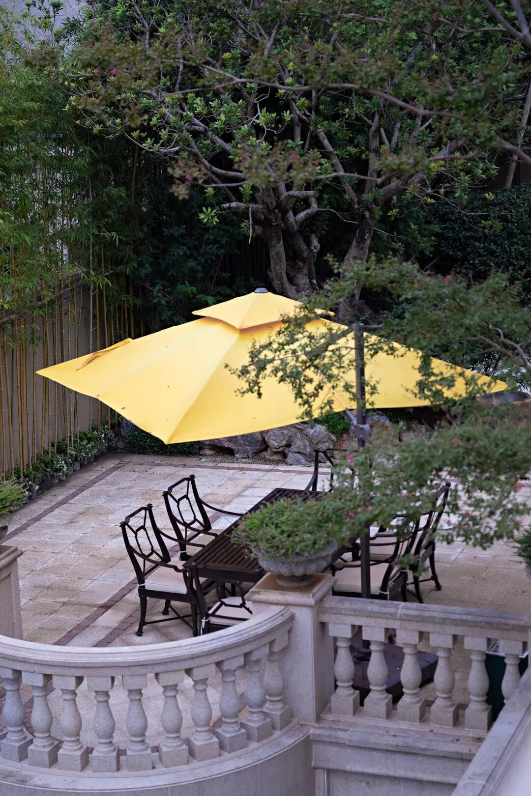 窗外的阳台拥有俯瞰庭院的绝佳视野,在这里既可欣赏人为的巧思,又能感受自然的力量。