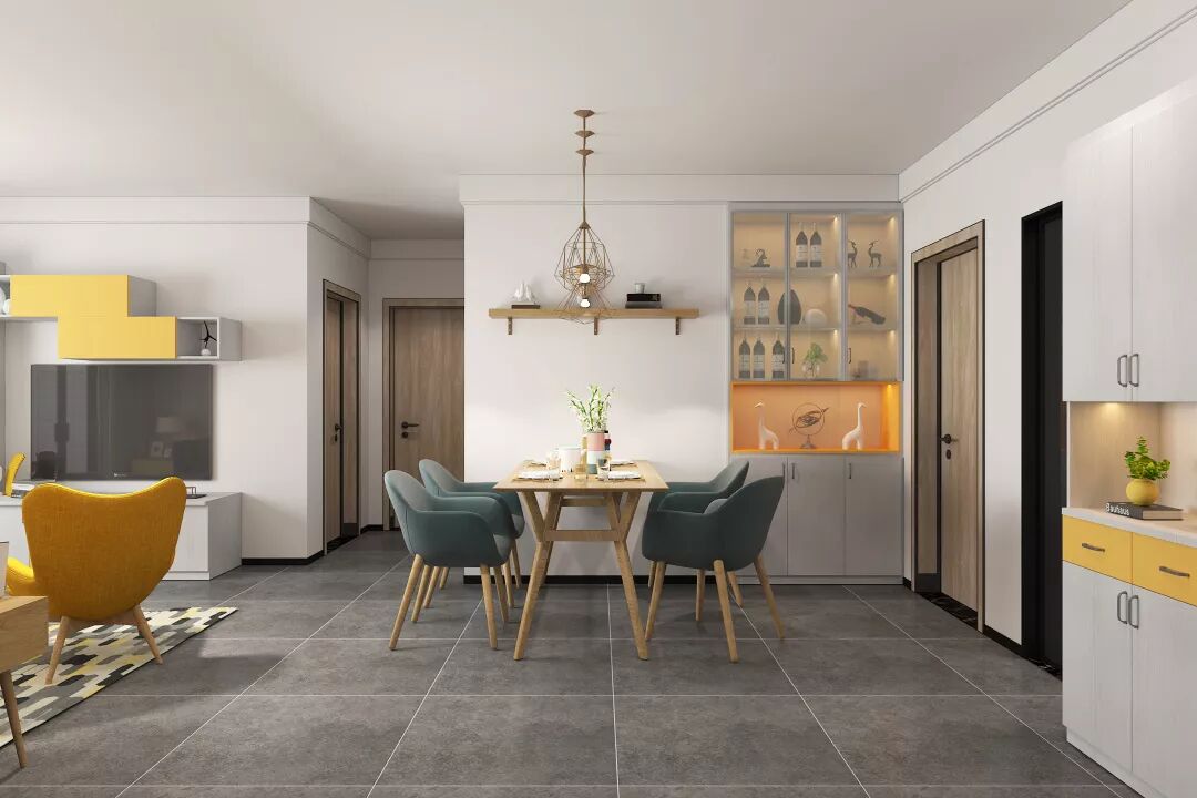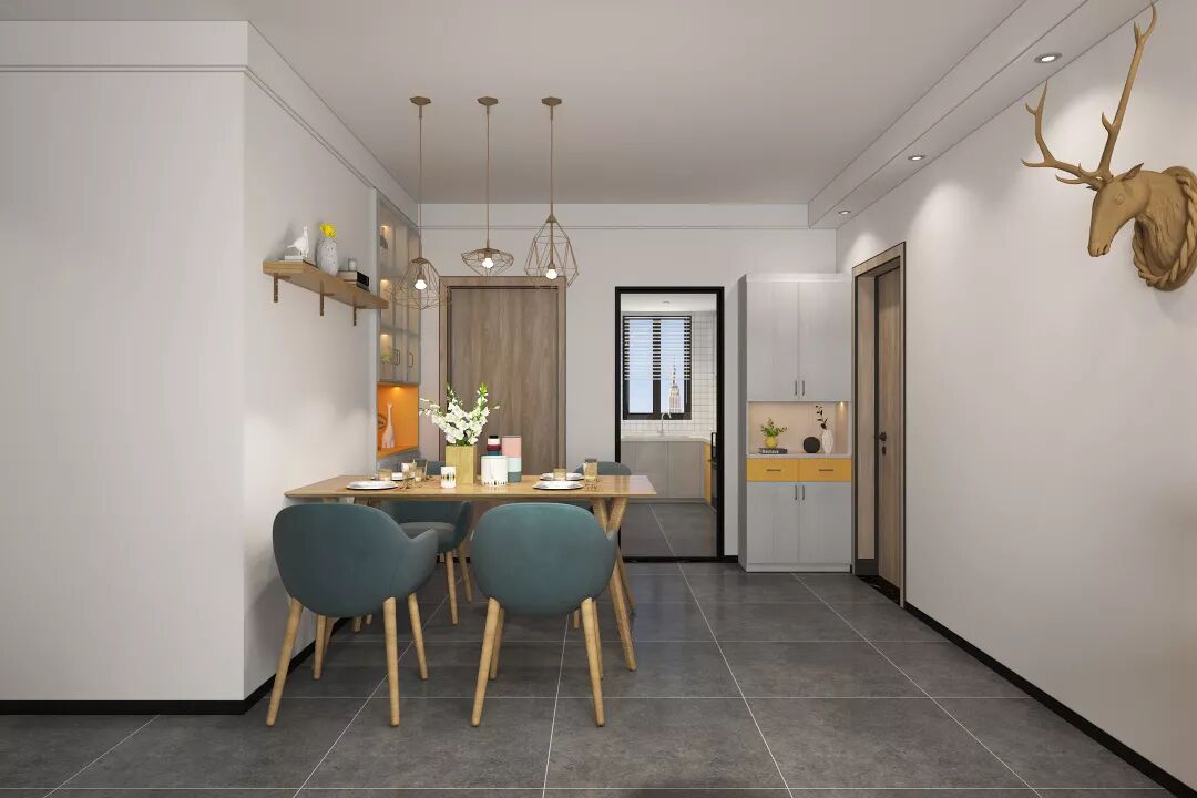 丰富和谐的视觉效果,让人体验到什么是“诗和远方”,这样活跃但又淳朴的设计风格宛若巴黎时尚少女的清新模样。电视柜设计时尚独特,沙发和餐椅等木色的融入给居室带来了自然的色彩,让人心情舒适。