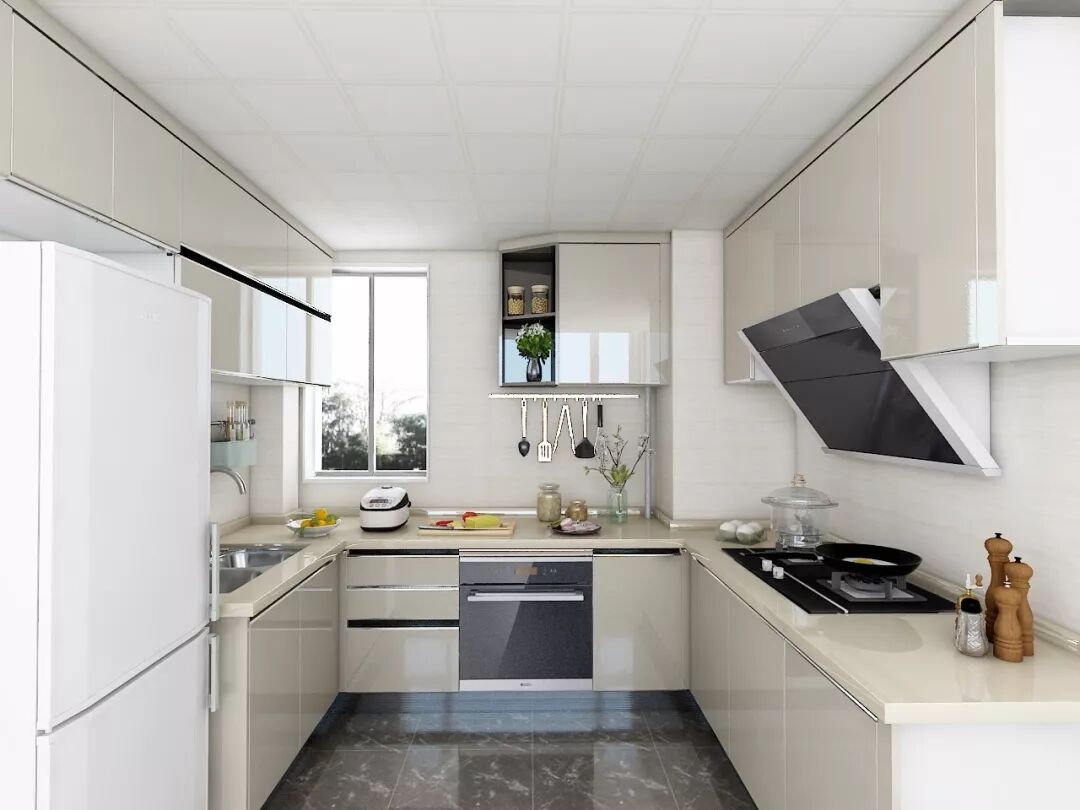 U型橱柜不是大厨房的专利,中户型厨房也可以拥有!将厨房的三面墙都利用起来,形成最完美的“取—洗—切—煮”行走动线。