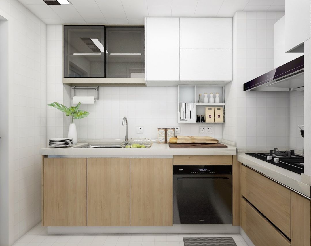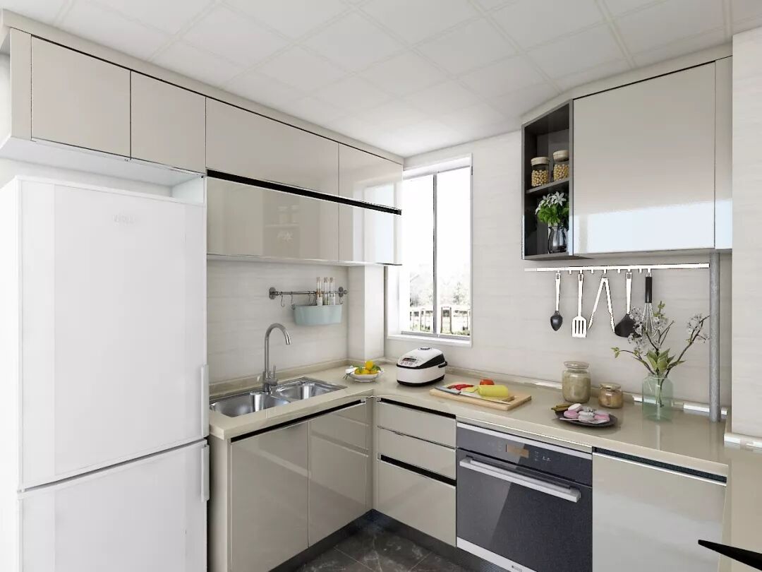 除了一字型,小户型厨房同样可以考虑L型布局,利用转角位将操作区和烹饪区分隔开,这样能使用的空间就更加宽松了。