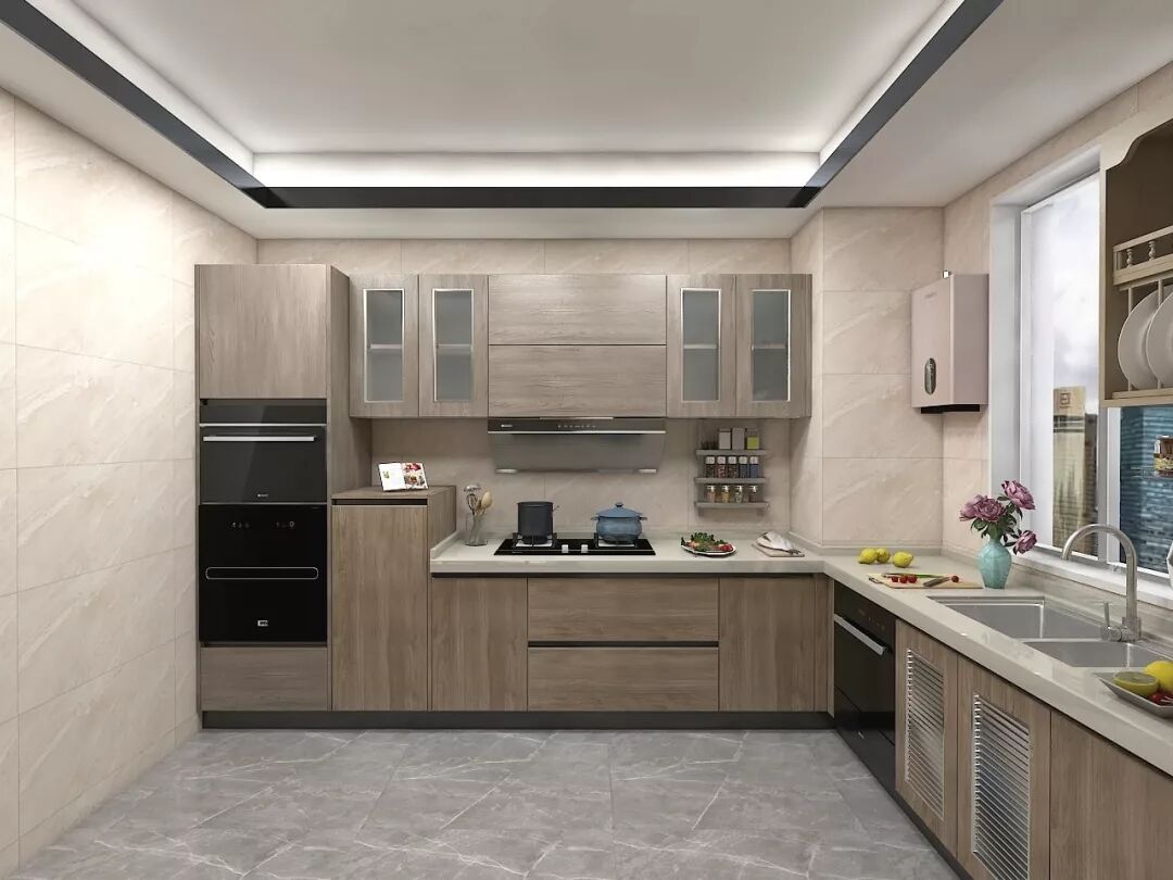 中户型由于面积比较有余裕,通常有7㎡~12㎡左右,所以在布局设计上可以多选择L型和U型,既能满足功能性,操作线条也更流畅。同时,可以增加小吧台等功能区,让厨房生活更丰富多彩。
