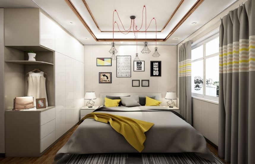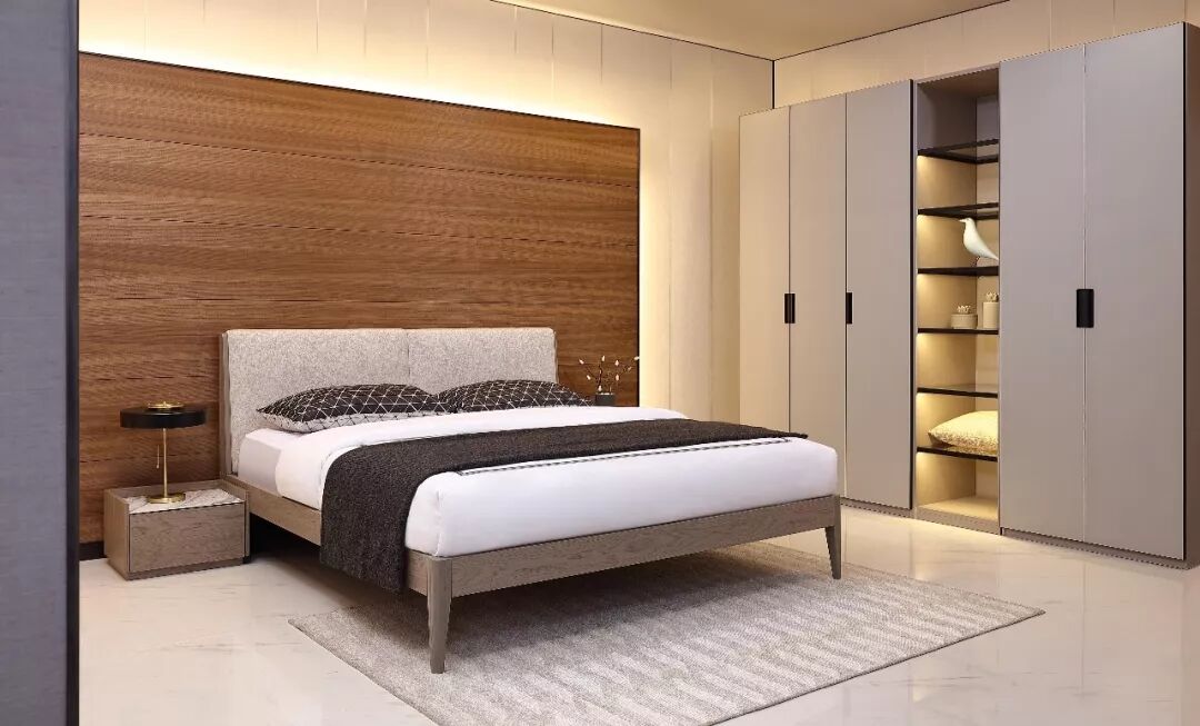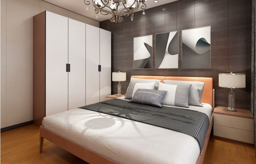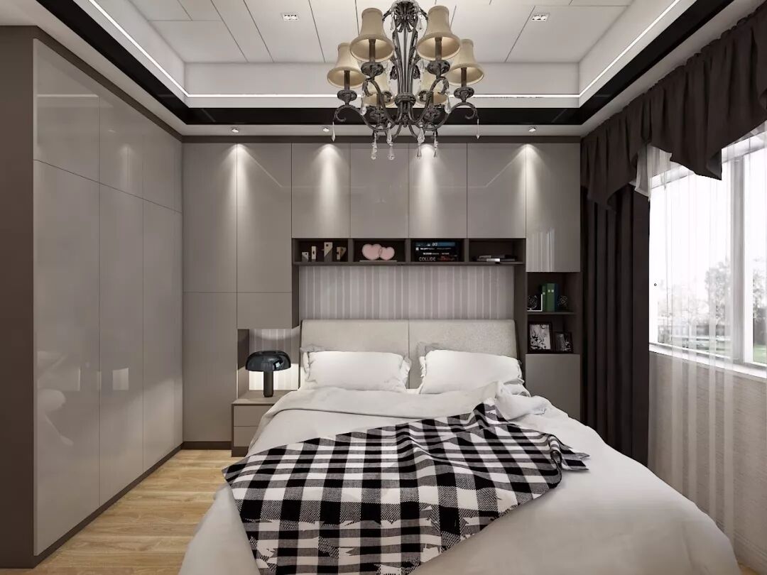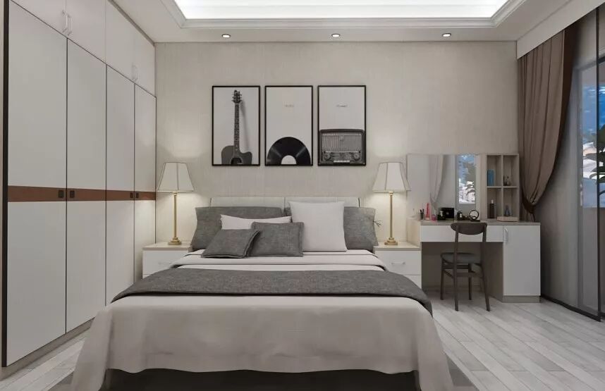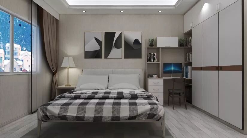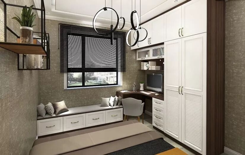 特点:节省空间,收纳性更好,款式、尺寸及形状灵活,非常适合小户型卧室。