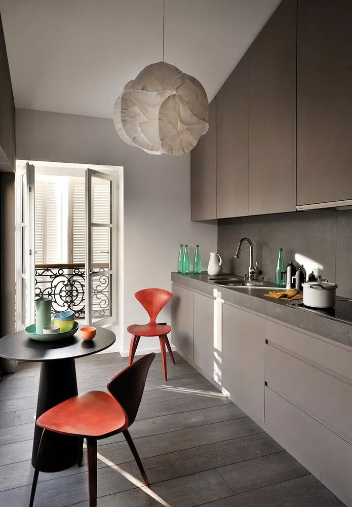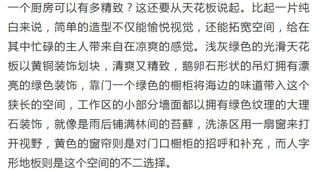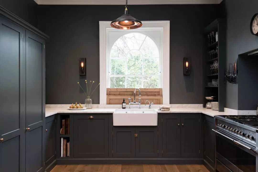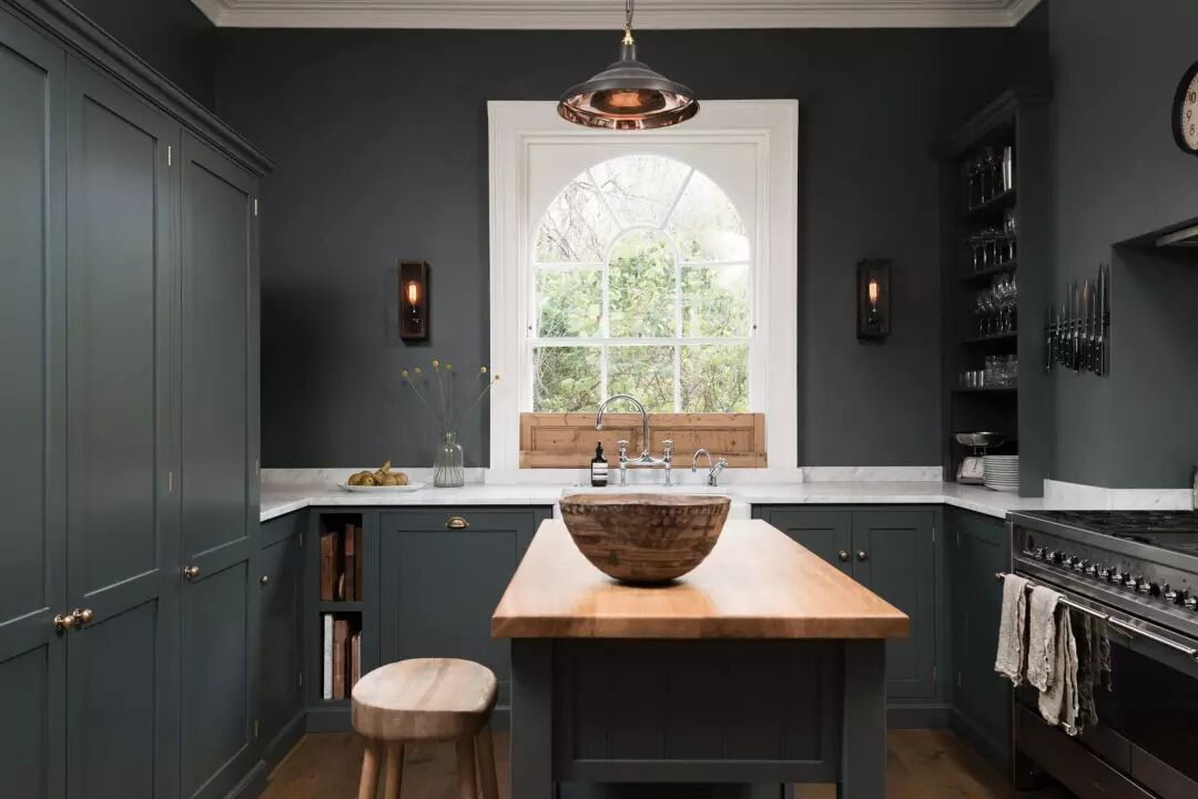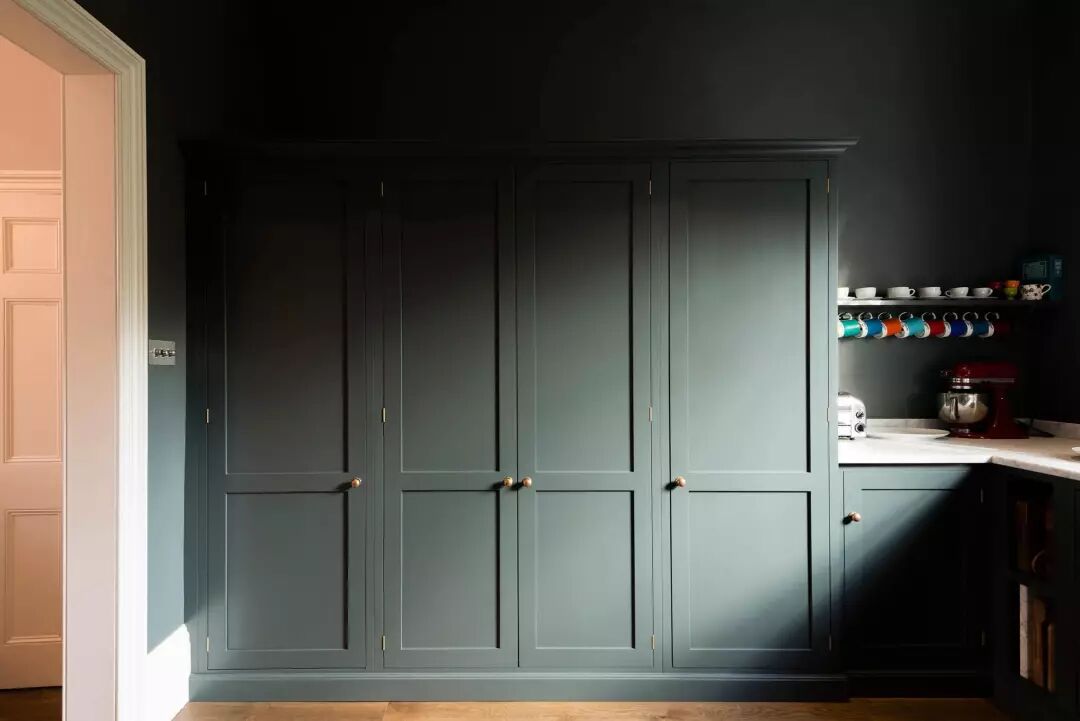 一个墨绿色的厨房是经典的,热情的,温暖的,舒适的,也是奢华的——这是我们从客人那总结来的评语,特别是当我们在其中使用核桃木和皮革拉门时,无疑又为其增添了流行的因素。墨绿色在厨房中的应用大概永远不会停止。