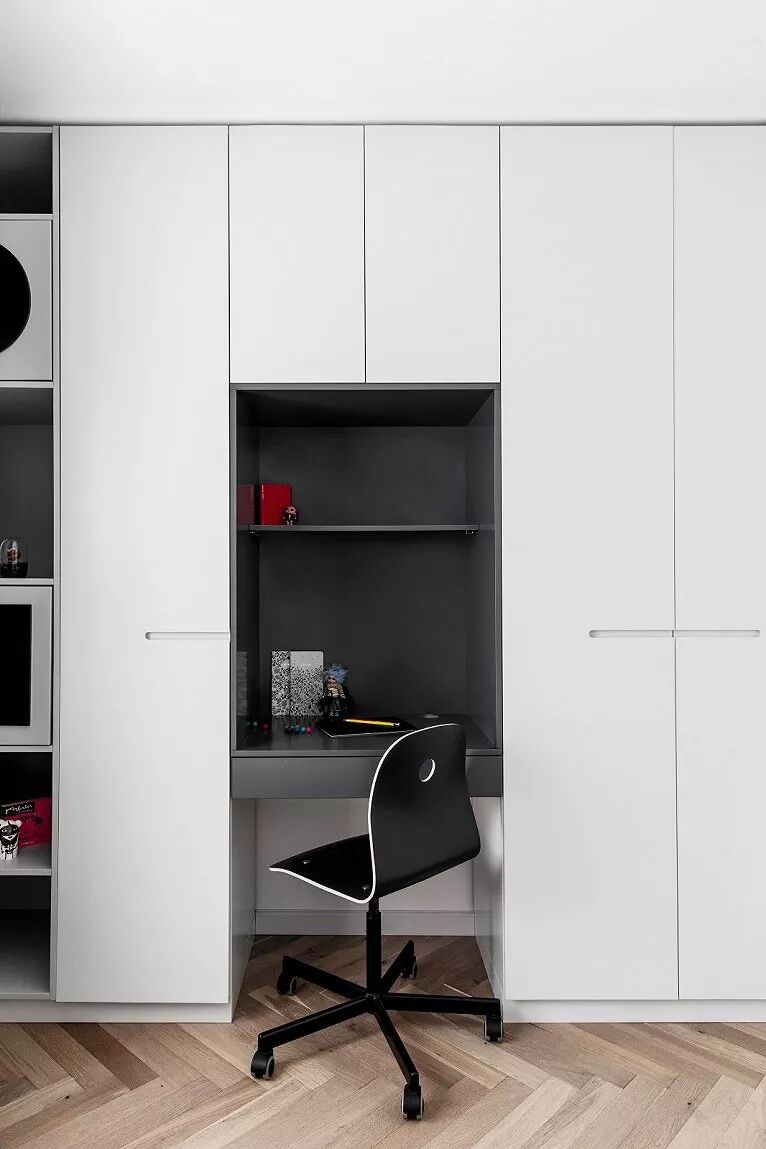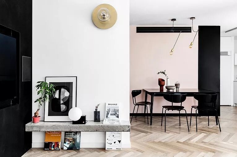 经典的黑白中,参杂着些许木元素,简单却又富有视觉冲击力。