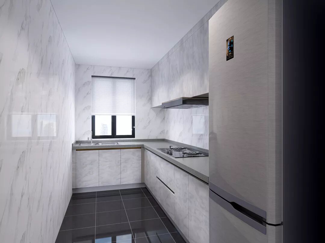 黑白灰色调的厨房虽然有点冷,但是却非常整洁干净,整一性很强的的厨房,营造出自然大方的烹饪氛围。