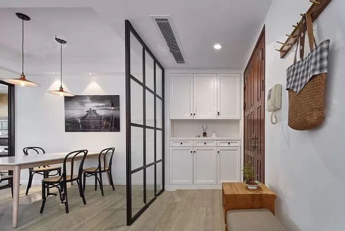 大门正对卫生间,可以做隔断在入门处或卫生间区域,它能起到很好的视觉缓冲作用,避免一眼望穿客厅,也可以化解入户门正对厕所的尴尬。