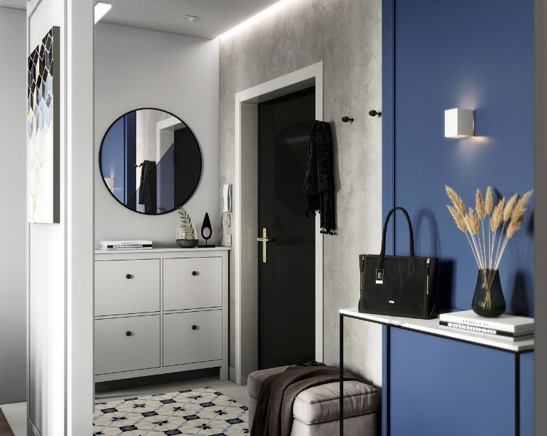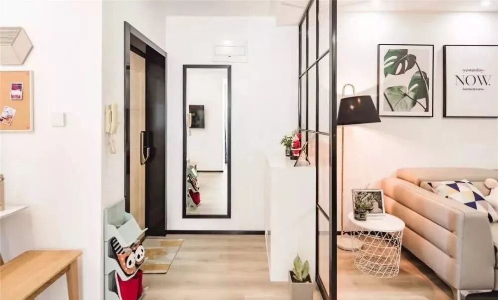 你可以因地制宜,充分利用空间来做入户衣帽鞋的收纳,多数小户型都很需要,所以不丑+实用非常重要。