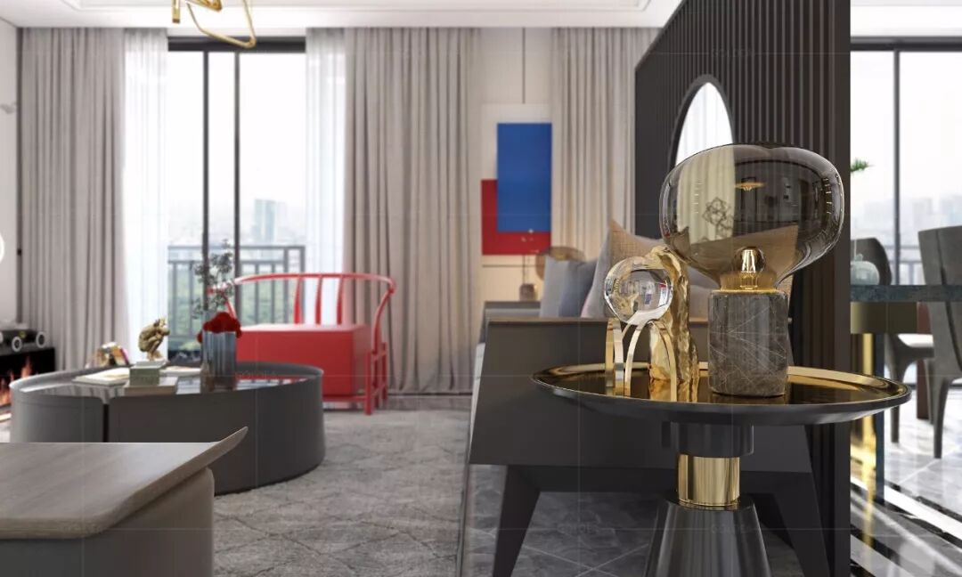 以“水绕青山山绕水,峰峦叠嶂,琉璃如镜,雍容尔雅,花香四溢”为思路,运用在吊灯、摆件、器具、配饰之中。