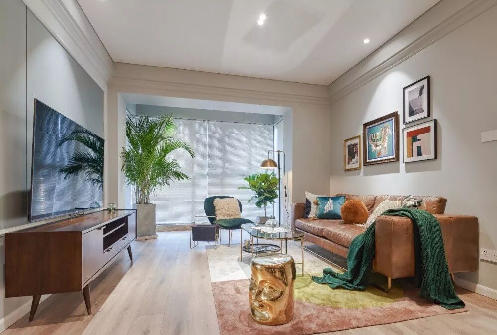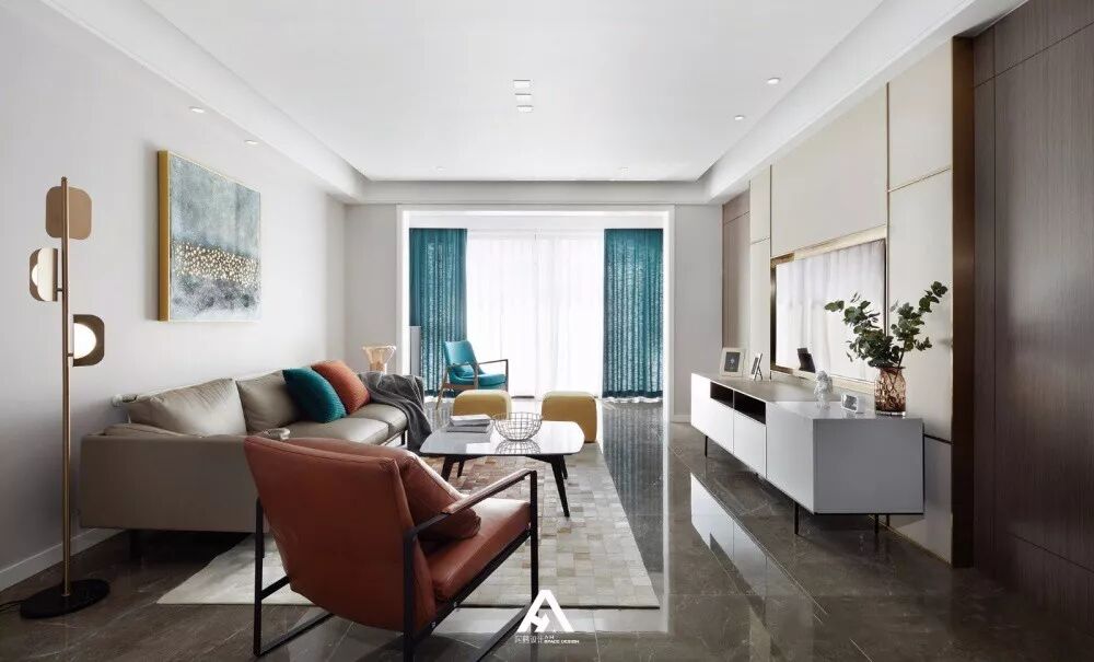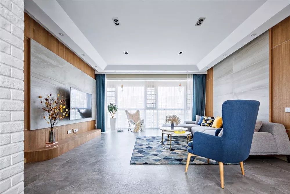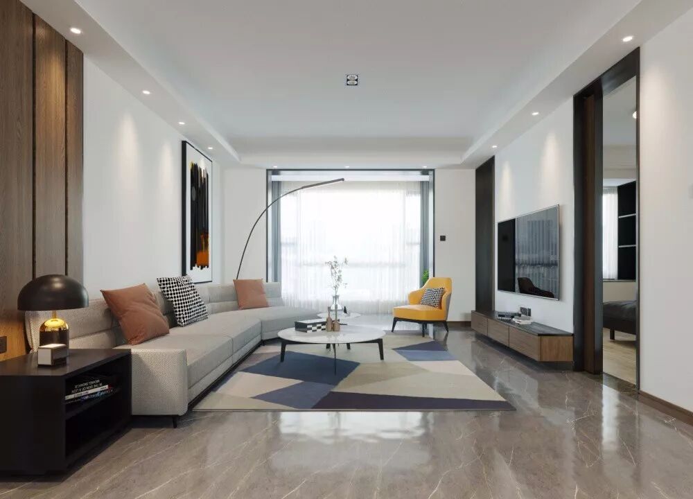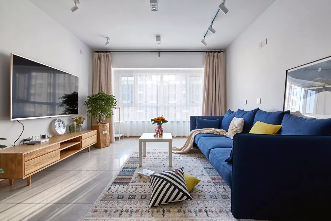 在传统的客厅设计中,灯具一般是采用大体积的吊灯或吸顶灯,这样的灯具安装方式布线比较简单,但是照明集中而不均匀,让空间边角显得昏暗,而中间区域又过于明亮,因此出现了筒灯、导轨灯等这样分布式的照明设计,让空间照明更加均匀舒适。