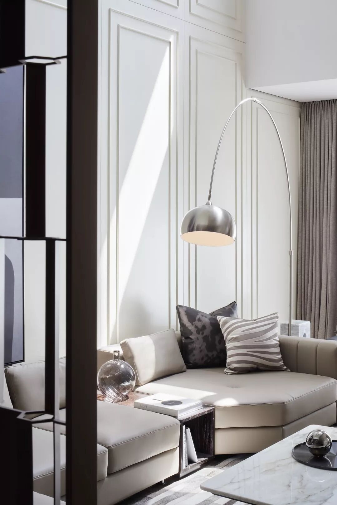 环视所见,硬朗与柔软、方正与圆润、直线与曲面、大与小、高与低、明与暗……交融共舞。这一切背后皆是对设计师精准拿捏室内感受、比例关系、构图审美、细节质感的印证。