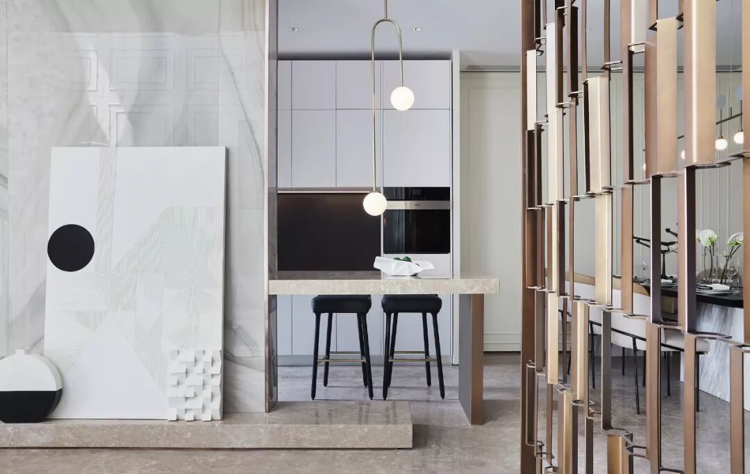以穿插的构造手法巧妙设置吧台,无论从使用功效,还是情感交流上,均为生活增色。