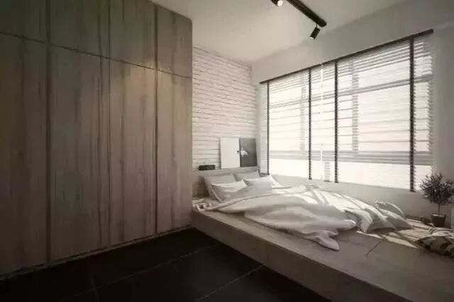也有一些屋主,喜欢的是榻榻米地台的颜值,所以会选择舍弃榻榻米地台的储物能力,把地台做矮、做大一些,再摆上一张床,更有时尚感。