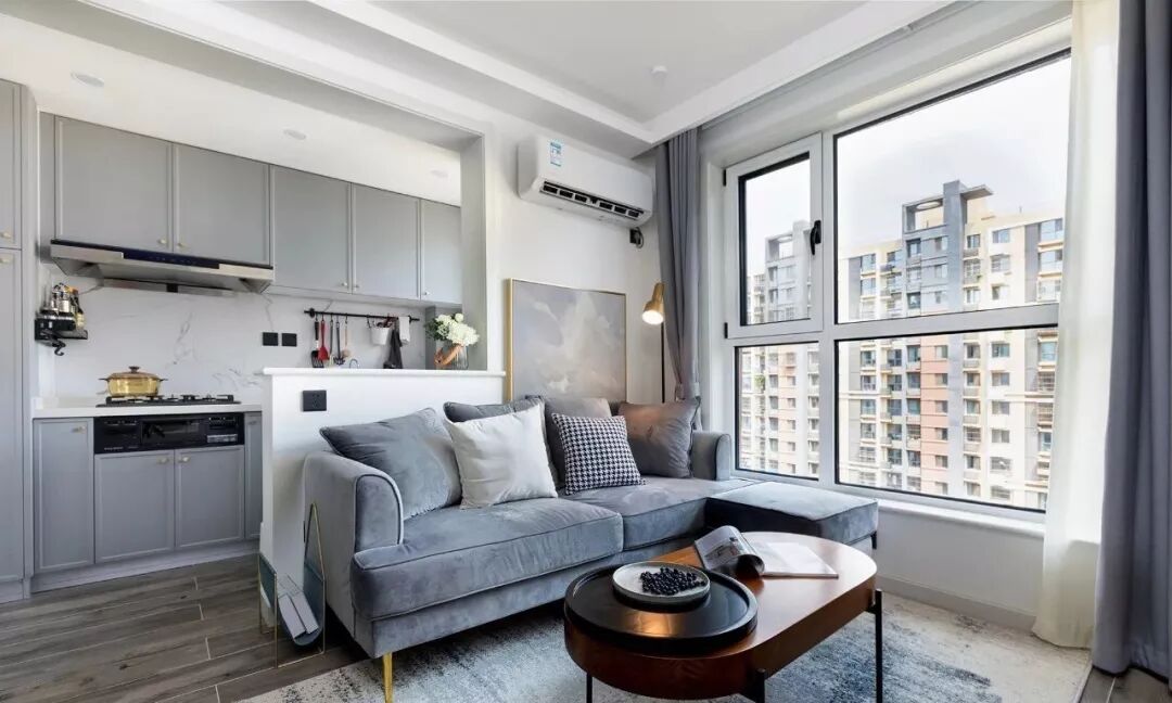 ▲ 将厨房打开,与客厅相隔半墙,既是沙发靠背,又具小吧台的功能,也让整个公领域变得亮堂起来