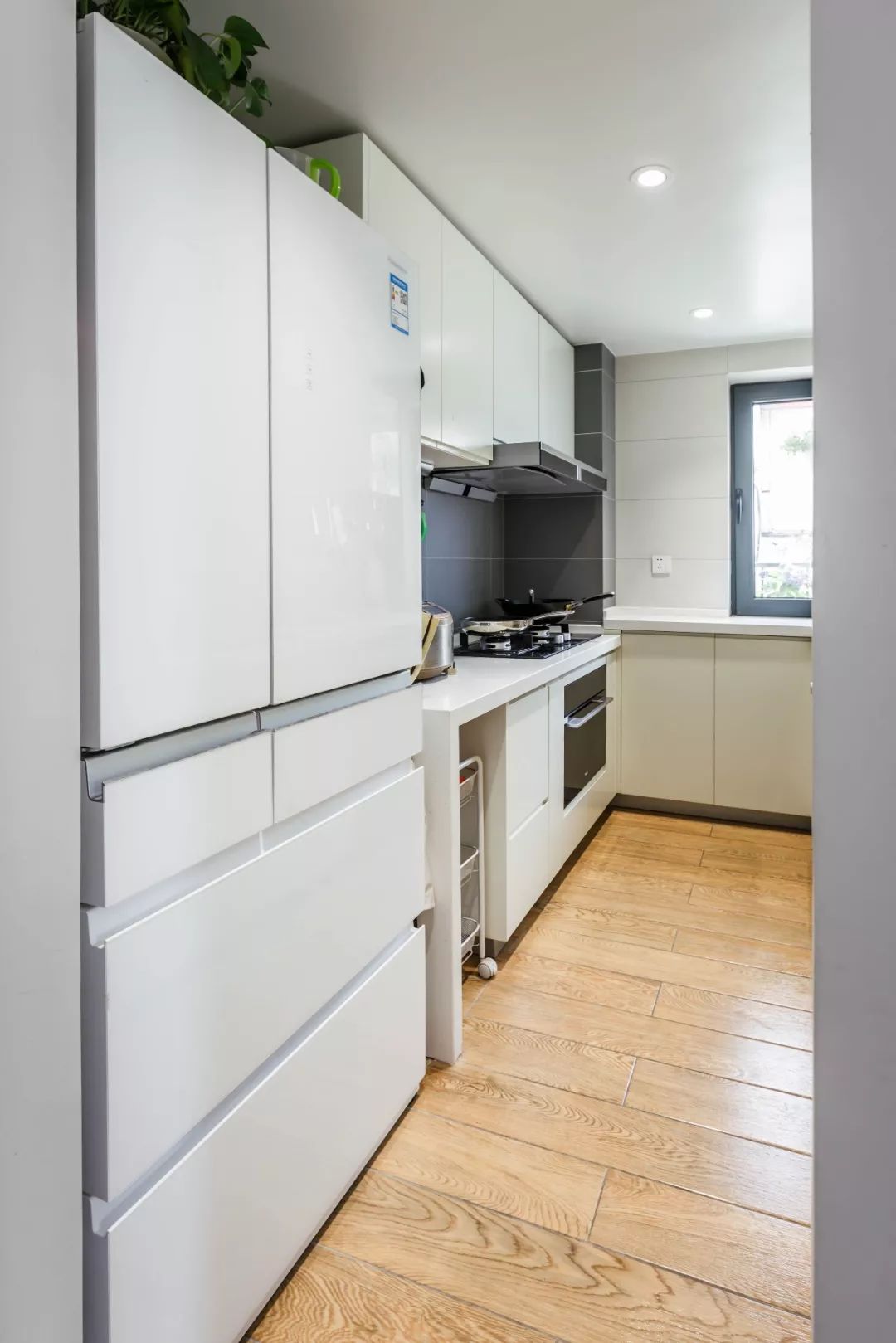 经常在家做饭的话,每天都需要买菜回家,此外还有很多干货杂物,可能会有很多不适合放进冰箱,而且用得比较频繁的,这个时候橱柜有一个留空的格,那么收纳起来就会方便很多。