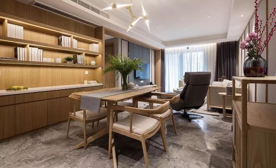 106平的新中式风三居室,用原木色与暖灰色构造的家