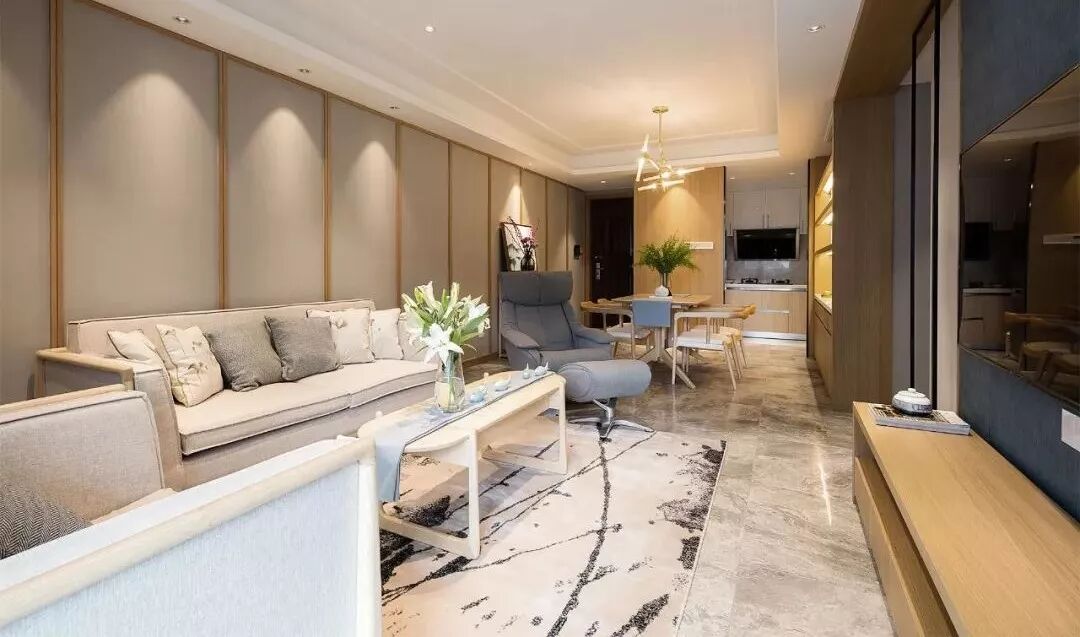 今天分享的是一套建筑面积106平米的新中式风三居室案例,设计师以暖灰色为底,搭配木质家具和木饰面板,来构造出这样一个温馨、舒适的家,房子不算特别大,但住下一家三口,却是刚刚好。