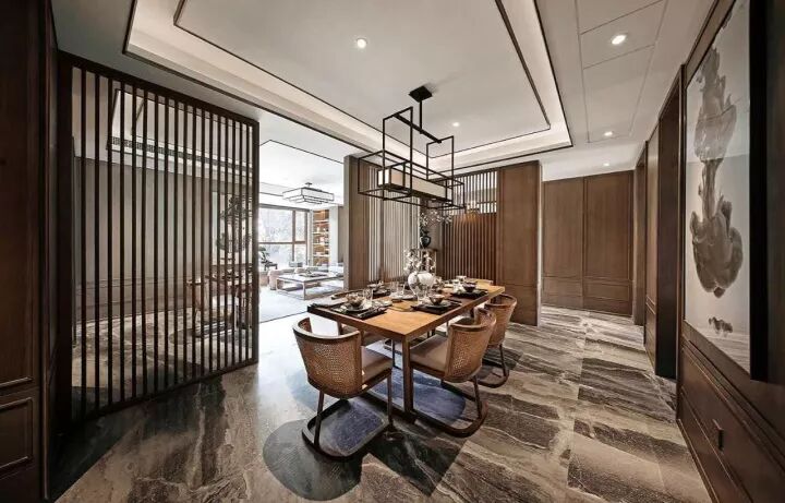 木质镂空类隔断可谓是中式的灵魂,常用的有回字纹、冰裂纹等。具有丰富的层次感,将中式风格中的典雅高贵、深厚文化底蕴演绎的淋漓尽致。
