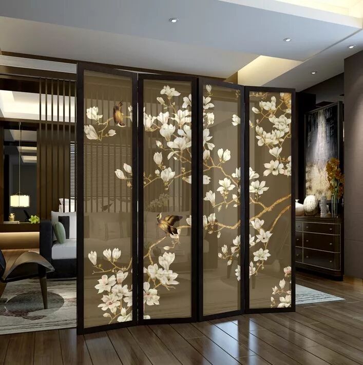 屏风隔断透明或半透明的屏风隔断会给人以文雅、恬静的感觉。装饰性极强,可以彰显出中式风格的高雅大气。